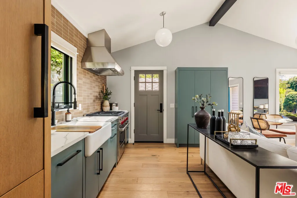 Inside, the two-bedroom, one-and-a-half-bath residence unfolds with an effortless, open-plan layout designed for both living and working. Warm hardwood floors run throughout, while thoughtfully curated finishes from designer-tiled baths to refined millwork create a cohesive, quietly sophisticated palette. The kitchen serves as the home's center piece: a tailored composition featuring a Wolf range, Sub-Zero built-in refrigerator, Bosch dishwasher, farmhouse sink, and integrated Asko laundry - all selected for the most discerning of buyers. Tucked into West Hollywood's coveted Norma Triangle, this modern Craftsman cottage by Los Angeles architect Corey Miller offers a thoughtful take on a classic California style. Just blocks from Beverly Hills and moments from the Pacific Design Center, the home blends architectural character with an easy, livable sensibility. Architectural corner windows bring in abundant natural light while adding a clean, modern edge to the home's timeless silhouette. Outside, fragrant French shrub roses line the property, creating a welcoming first impression each spring. Gated front and side patios offer peaceful, private outdoor spaces for entertaining, relaxing, or accommodating pets, with clean hardscaping that keeps the look refined yet low maintenance. Both architectural and approachable, the residence blends timeless craftsmanship with modern restraint. Set near some of West Hollywood's best restaurants, cafes, boutiques, and design destinations, Lloyd Place offers the utmost in turnkey sophistication, in the heart of one of West Hollywood's most desirable enclaves.