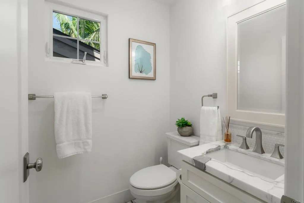 Built new in 2018 and designed by AGK Design Studio, this light & bright home offers privacy, custom detailing & an unbeatable location just blocks to sandy beaches and the Avenida de la Playa dining & retail promenade! This Nantucket-inspired detached single-family home, nestled in a private enclave of 6 charming beach houses, offers a functional multi-level layout that includes a first-floor bedroom and full bathroom ideal for guests or a home office. The open-concept main living area, featuring boxed beam ceilings, includes a gourmet kitchen, center island with bar seating, marble countertops, Viking appliances, comfortable dining area, cozy fireplace, powder bath, and private balcony. Upstairs, the primary suite is a serene retreat that includes a walk-in closet, luxurious bathroom, and its own private balcony. Additional highlights include a spacious laundry room with plenty of storage and a direct-access 2-car garage. Ideally located near the LJ Beach & Tennis Club with easy access in & out of town to enjoy the famous La Jolla Shores lifestyle!