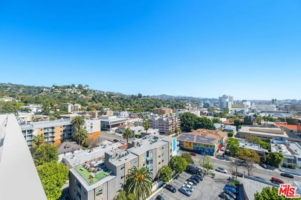 One of the best-appointed residences in the iconic Hollywood Versailles, this 12th-floor Jr. Penthouse offers a rare combination of scale, light, and sweeping views. Positioned on a coveted corner, the home captures breathtaking 280-degree vistas, including the Hollywood Sign, Yamashiro, Downtown LA, and even Catalina Island on a clear day, with a favorable orientation that provides abundant natural light and a consistently cool, comfortable living environment. The expansive layout is thoughtfully designed for both everyday living and entertaining, enhanced by dramatic floor-to-ceiling windows and exposed concrete ceilings that create a sophisticated, modern aesthetic. The open-concept kitchen features stainless steel appliances and generous counter space, seamlessly connecting to the main living areas. The primary suite serves as a tranquil retreat, offering panoramic views of the Hollywood Hills and a well-appointed en-suite bath. A versatile second bedroom with sleek sliding doors easily functions as a guest room, office, or creative space. Both bedrooms are equipped with remote-controlled blackout shades for optimal comfort. Additional highlights include in-unit washer and dryer and access to the building's full suite of amenities, including 24-hour concierge, valet parking, a resort-style pool and BBQ courtyard, fitness center, and conference room. A rare opportunity to own a view-driven residence in one of Hollywood's premier full-service buildings.
