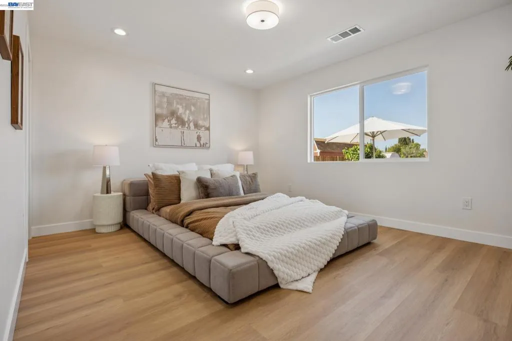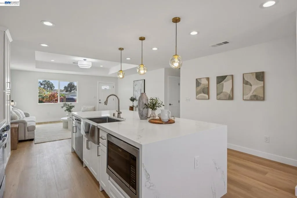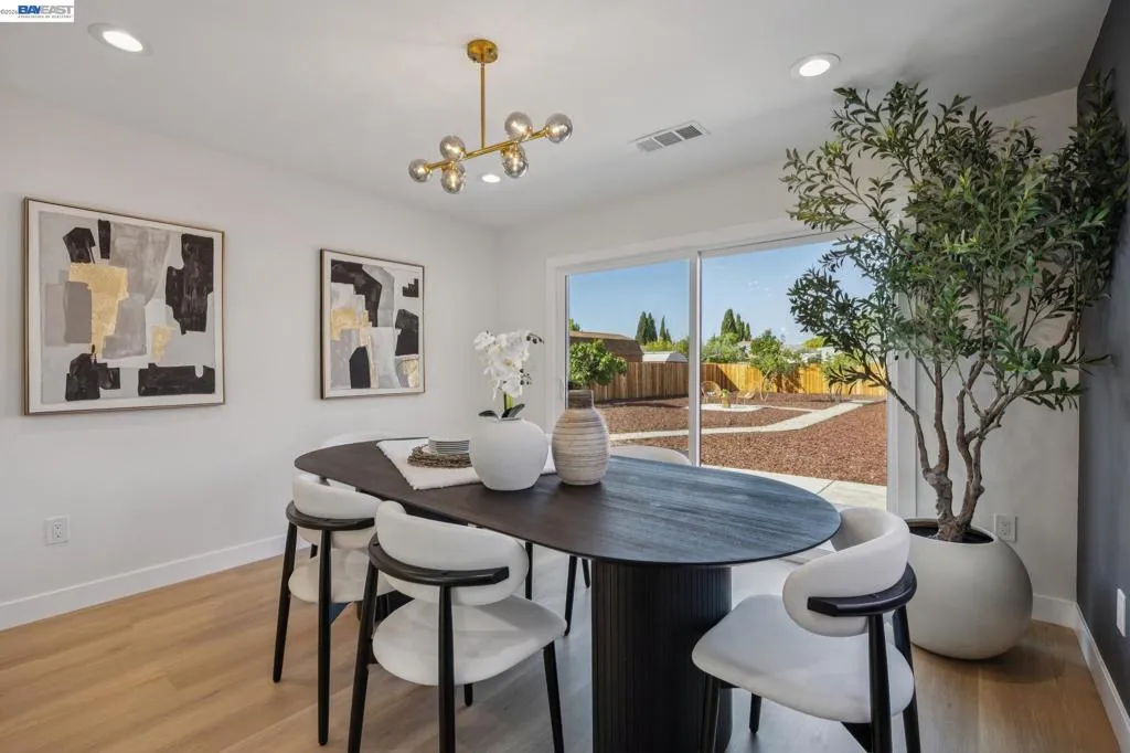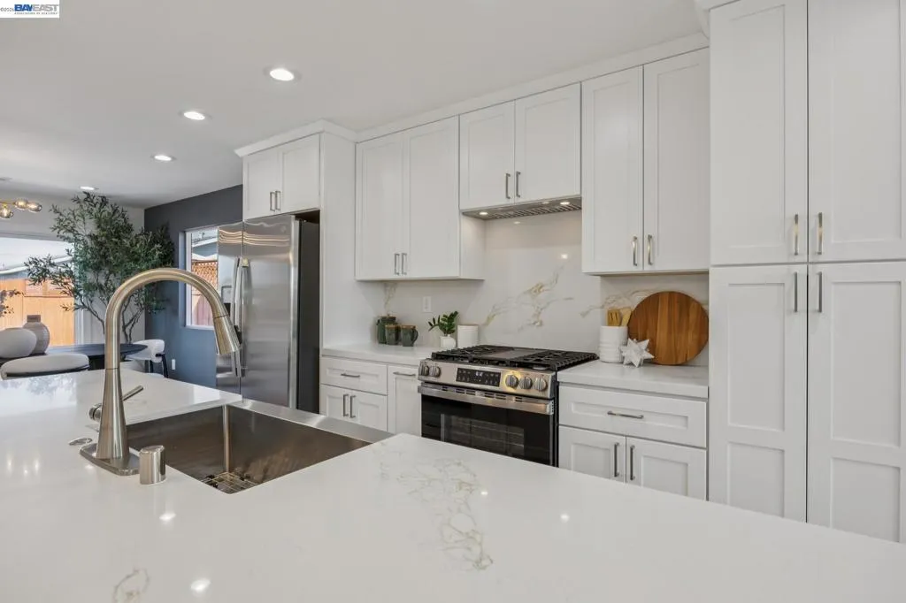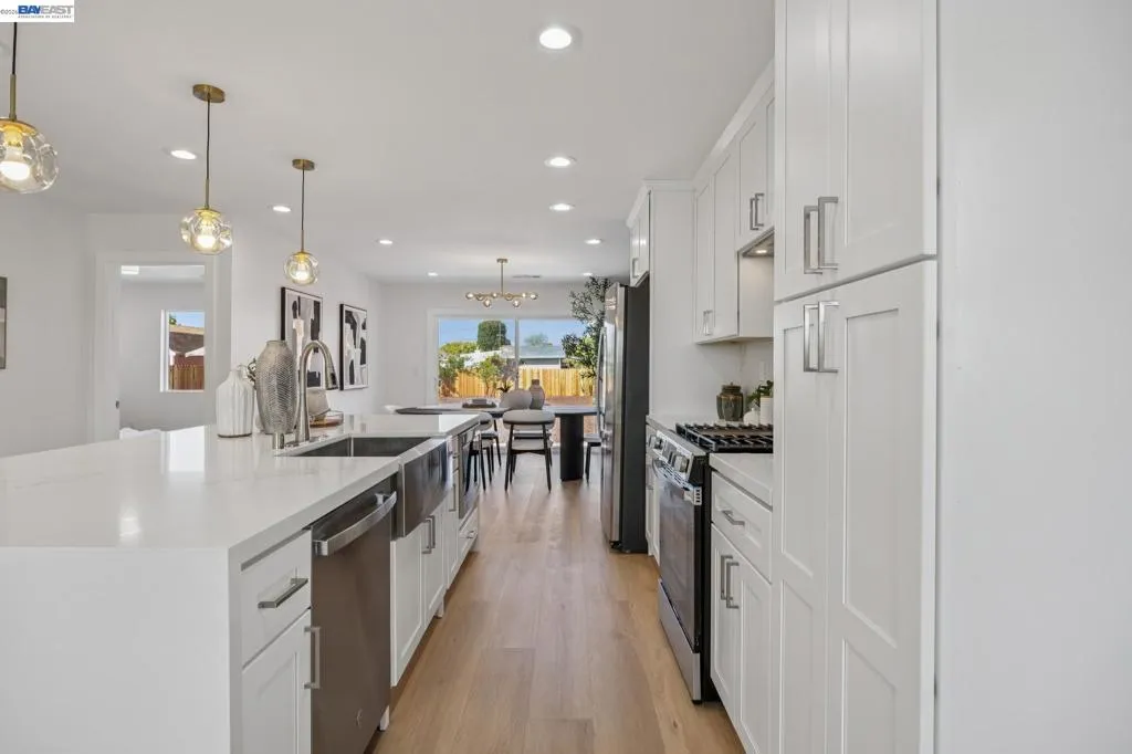 Step into this stunning, like-new residence, thoughtfully rebuilt down to the studs with full permits—delivering the quality, efficiency, and peace of mind of modern construction in a quiet, family-friendly neighborhood. Offering nearly 1,500 square feet of living space, this single-story home features a bright and functional three-bedroom, two-bathroom layout filled with natural light. At the heart of the home, the chef-inspired kitchen shines with a dramatic waterfall quartz island, stainless steel appliances, shaker cabinetry, gas range, and a built-in wine fridge—perfectly designed for both everyday living and effortless entertaining. The spacious primary suite serves as a private retreat, complete with 2 closets, including a walk-in, and a beautifully appointed en-suite bath. No detail was overlooked in this comprehensive renovation, which includes all-new framing, drywall, insulation, electrical, plumbing, central heating/AC, and all new interior finishes. The exterior has been equally refreshed with new stucco, a concrete driveway, new garage door, and a new fence—enhancing both curb appeal and functionality. The expansive, low-maintenance backyard offers incredible potential for a future ADU, garden, or outdoor living space. Ideally located, you’re just moments from Sprouts Farmers Market, Coyote Hills Regional Park, and top-rated schools such as Challenger and Stratford. With easy access to the Dumbarton Bridge and Highway 880, and close proximity to major employers including Tesla, Lucid Motors, Meta, and Google, this home perfectly balances modern luxury, comfort, and everyday convenience.