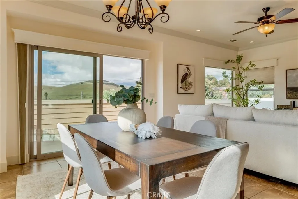 Spacious Morro Bay home offering over 2,000± sq ft with a layout that works well for both everyday living and time spent with family or guests. The home features good natural light and a functional separation between living areas and bedrooms. The kitchen is a standout feature—spacious and well-equipped with a professional-style gas range, breakfast bar, and ample storage. It connects easily to the main living space, creating a practical flow without feeling closed off. A rooftop deck adds another layer to the home, offering views of the ocean, Morro Rock, and the stacks Outdoor space is simple and easy to maintain, making it a good fit for buyers looking for something low maintenance. Located with convenient access to downtown Morro Bay, the Embarcadero, and local beaches.