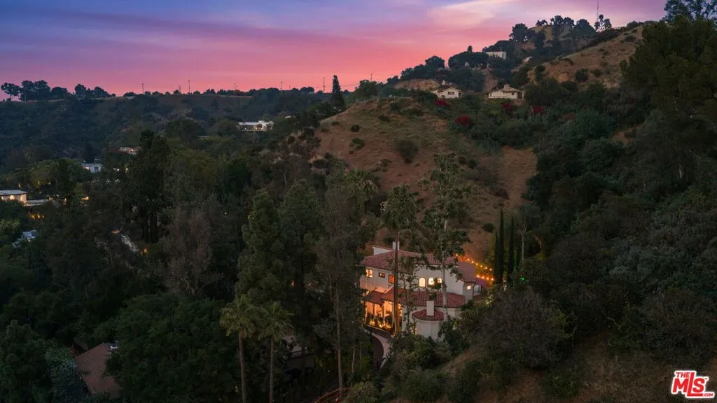 Tucked away on a serene flag lot along a gated private road, this Mediterranean masterpiece redefines privacy, seclusion, and modern sophistication in the prestigious Beverly Hills enclave. Perched above Coldwater Canyon, this estate is a rare sanctuary where luxury meets tranquility amidst the coveted 90210 zip code. From the moment you enter the exclusive gated drive, a sense of retreat envelops you. Surrounded by lush natural landscapes that create a peaceful cocoon far removed from the city's hustle this residence is a testament to thoughtful design and modern elegance. Reimagined from the ground up and renovated with the finest craftsmanship, it seamlessly blends timeless sophistication with cutting-edge convenience. The grand foyer sets the tone with its custom-painted ceiling medallion and dazzling chandelier, leading into interiors that exude understated opulence. Throughout the home, European Oak floors, bespoke tile and stonework, and custom European-style lighting create a warm, inviting ambiance. The gourmet kitchen is a showstopper, featuring oversized Wolf and Sub-Zero appliances, custom maple cabinetry, marble countertops, and a commercial-grade vent hood. A temperature-controlled 760-bottle wine cellar and frameless glass walls that open to the backyard transform entertaining into an effortless art form.Upstairs, the primary suite is a haven of serenity, complete with soaring ceilings, two private balconies, and dual walk-in closets. The spa-inspired bathroom is a masterpiece of relaxation, with designer tiles, a freestanding soaking tub, and a walk-in shower that feels like a personal retreat. Secondary bedrooms, each with en-suites bathrooms and access to a wraparound balcony, ensure comfort and indulgence for family and guests alike. The outdoor spaces offer a seamless extension of the home's refined living. Designed for entertaining or quiet moments of reflection, the backyard is a private oasis featuring lush gardens, a sparkling pool and spa, and an outdoor kitchen surrounded by multiple covered seating and dining areas. A live performance stage nestled amidst the natural surroundings, perfect for hosting intimate gatherings or enjoying the magic of music under the open sky. This hidden gem is more than just a home, it's a lifestyle. With unmatched privacy, luxurious amenities, and a prime location that offers effortless access to both the city and the valley, this estate is a one-of-a-kind opportunity to live beautifully, quietly, and distinctively. Discover your personal haven where every detail is curated to perfection.