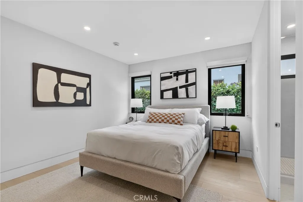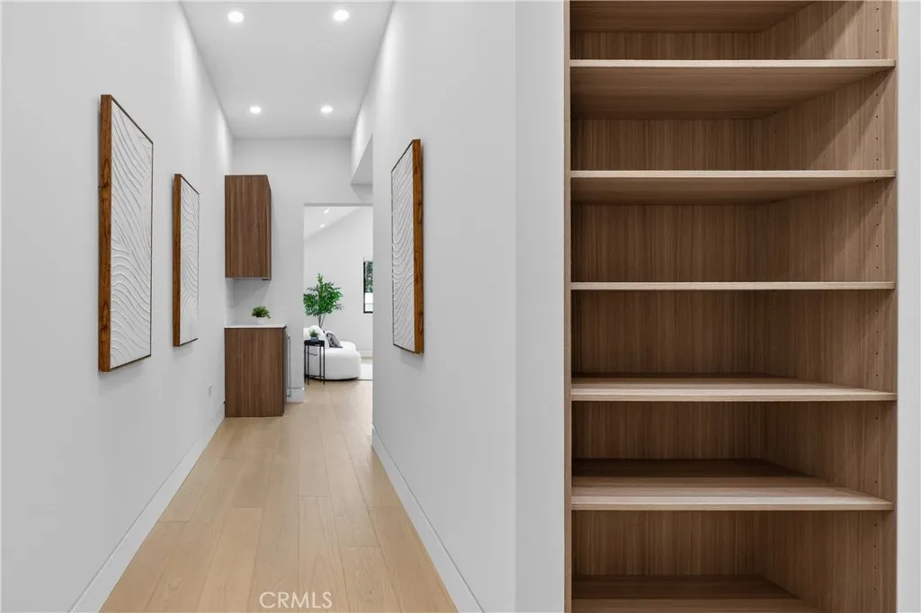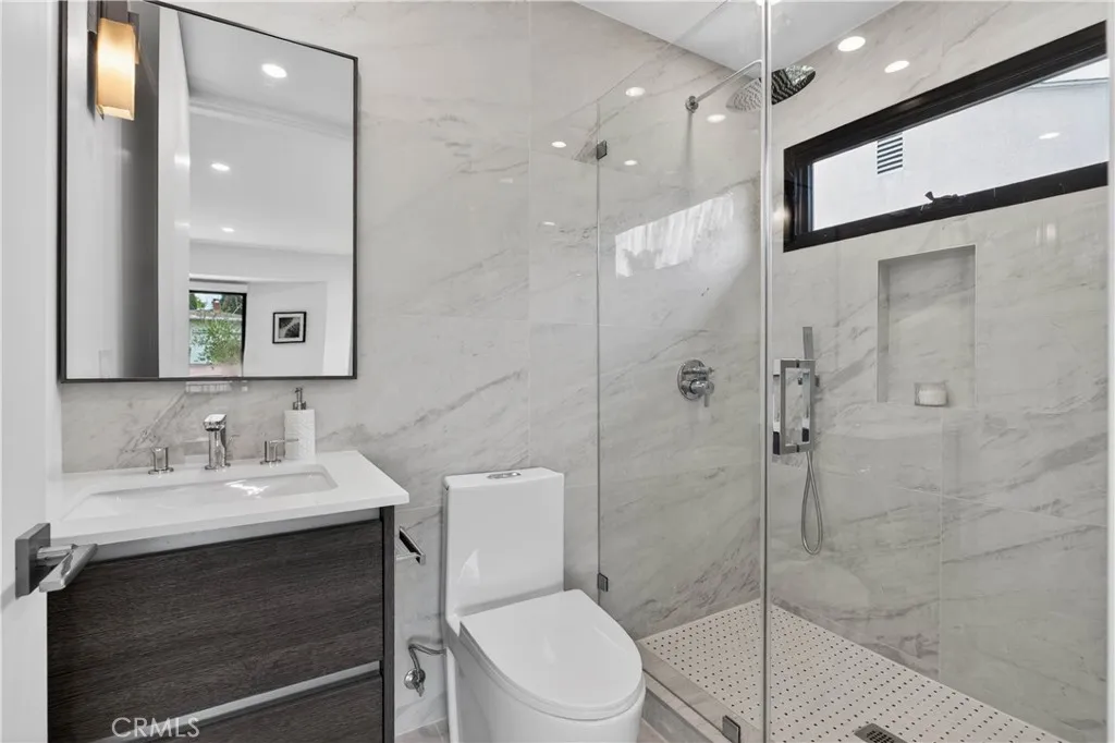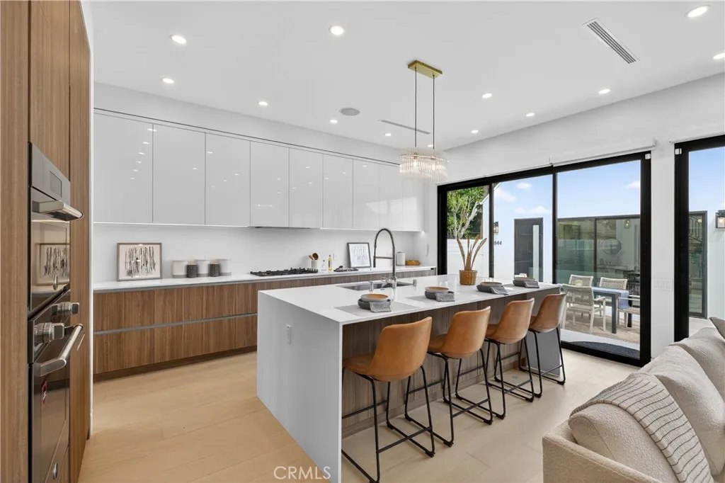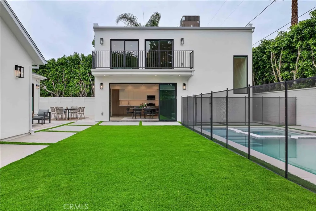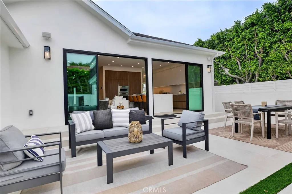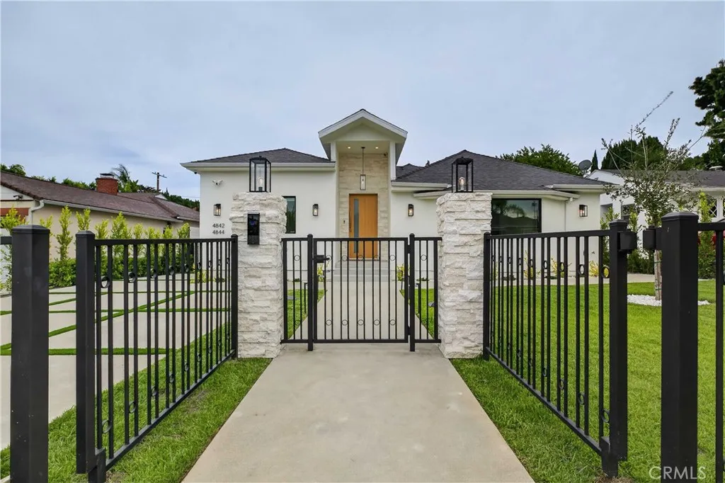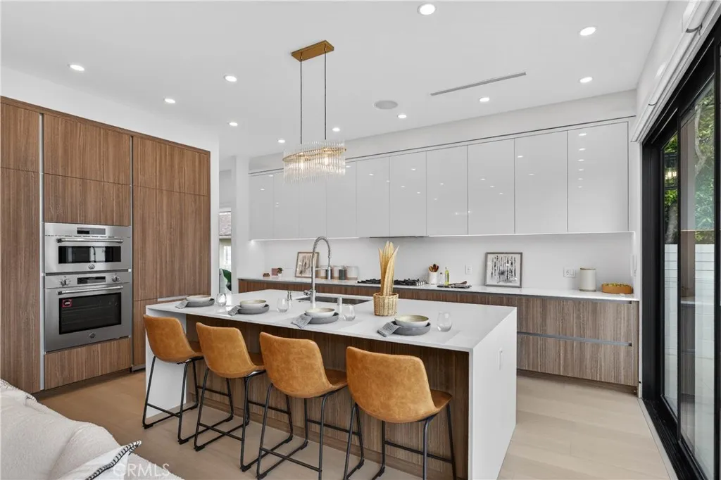Prime Cul-de-Sac Residence in Toluca Woods Set behind gates on a quiet cul-de-sac, this exceptional residence blends timeless traditional architecture with refined modern interiors, offering over 2,700 sq ft in the main home and a fully realized 1,100 sq ft two-story ADU. The result is a rare combination of classic curb appeal and elevated contemporary living. The main home features 4 bedrooms and 4.5 baths, while the ADU includes its own bedroom, two full baths, and a dedicated pool-access half bath—bringing the total to 8 bathrooms across the property. The ADU is equally well-appointed, featuring floor-to-ceiling sliding glass doors and a private balcony with sweeping views of the Hollywood Hills and Universal Studios. Designed with scale and natural light in mind, the interiors are defined by soaring 10-foot ceilings and expansive floor-to-ceiling sliding glass doors, creating a seamless indoor-outdoor experience ideal for both entertaining and everyday living. A formal dining salon serves as a striking entertaining space, anchored by a fireplace and complemented by a wet bar. The chef’s kitchen is appointed with premium Bertazzoni appliances, bespoke cabinetry, curated designer finishes, and a built-in beverage center. The primary suite offers a private retreat with a vaulted ceiling, spa-caliber bath, custom walk-in wardrobe, and an integrated beverage cooler station. Smart home integration allows seamless control of lighting, fireplaces, climate systems, pool audio, and a whole-home Sonos sound system, supported by a comprehensive security camera system. The resort-style grounds feature a newly redesigned pool with Baja shelf and PebbleTec finish, creating an ideal setting for relaxation and entertaining. Additional highlights include Hansgrohe fixtures throughout, independent HVAC systems, gas/electric meters for the main residence and ADU, and a dedicated laundry room with premium Samsung appliances. Ideally located in the highly sought-after Toluca Woods enclave of Toluca Lake, the property offers rare privacy while remaining moments from Burbank’s entertainment studios. With effortless access to Downtown Los Angeles, Hollywood, and the Westside, it places world-class dining, culture, and industry centers within easy reach while maintaining a quiet residential setting.