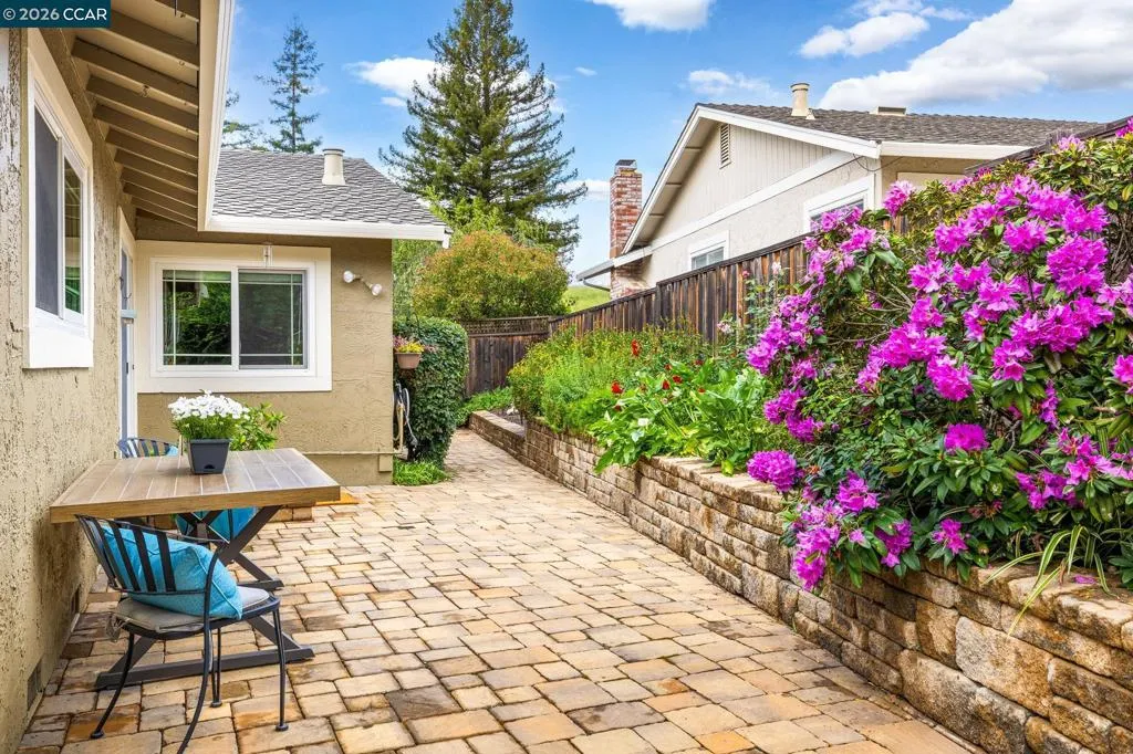 Single story duet in Rudgear Estates set toward the end of the street where the road meets open space, offering a quiet, tucked away setting. The living room features a fireplace & large picture window, while a separate dining area sits between the living room & kitchen, maintaining defined spaces with a natural flow. At the center of the home, the kitchen connects directly to the family room, creating a natural gathering space. The remodeled kitchen features shaker style cabinetry, stone countertops, stainless steel appliances, a gas range, peninsula seating & ample storage, with a skylight bringing in natural light. The family room opens to the backyard through sliding glass doors, creating an easy indoor outdoor connection. The primary suite offers direct backyard access, a walk in closet & an updated bath with a walk in shower. Two additional spacious bedrooms share the hall bath. The backyard offers privacy with paver patios, raised garden beds, mature landscaping & multiple areas for outdoor dining or relaxing. Ideally located near Rudgear Park, community pool, trails & top rated Walnut Creek schools, this home is minutes from Downtown Walnut Creek, Whole Foods, & Highway 680, with BART just 5 miles away.