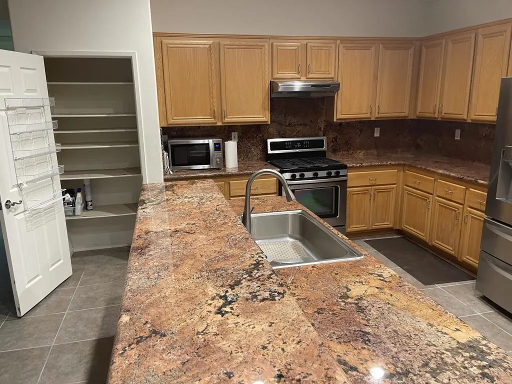 Wow: This is 4-bedroom 3-bath home located in very desirable Las Brisas I, a gated family community. The mountain views and spectacular. Inside, the great room has a fireplace. The home has an upgraded two-zone Heat Pump HVAC System that keeps it energy efficient. The primary suite is a private retreat with double door entry and direct access to the rear leisure area. It features an expansive bedroom, a spa-like bathroom, and dual walk-in closets. The 2nd bedroom has a window to the rear leisure area, with direct door to the hall-bathroom, making it ideal for guests. The 3rd bedroom is versatile as an office/den, has a built-in desk. The kitchen has granite counters, with a large island, perfect for home chefs and entertainers alike. Laundry Room is access to the 3-vehical garage with built-in storage cabinets, attic storage access, a workbench, an EV charging outlet, and a Navien tankless hot water system. Ther rear yard has a 10X10 shed with paved access; the side yard has gated RV Storage.