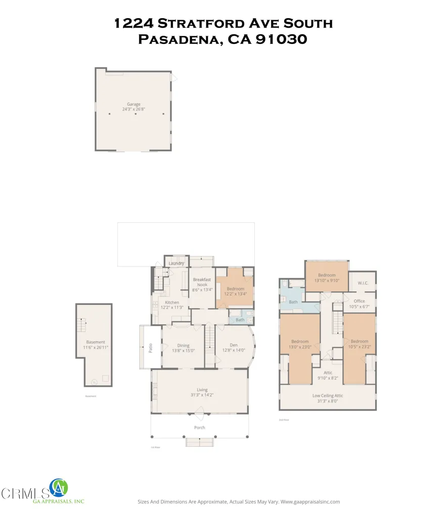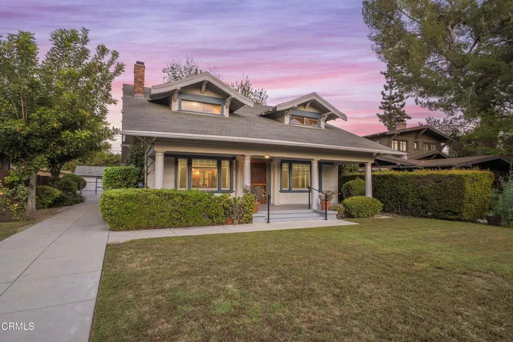 Step into the timeless elegance of this beautifully maintained 1914 Craftsman home, a true testament to early 20th-century craftsmanship. The expansive, classic front porch offers a gracious welcome, hinting at the warm, character-filled interiors that await. Upon entering this 2,785 square foot home, the spacious living room immediately captivates, with wood beamed ceilings and a cozy fireplace perfect for intimate gatherings. The room is further distinguished by rich redwood built-ins, showcasing the home's original, high-quality millwork. The formal dining room continues this theme of classic sophistication, featuring stunning redwood paneling and exquisite, built-in china cabinetry--ideal for hosting memorable dinner parties. A unique feature of the main level is the den, a beautifully designed curved room that offers an architectural focal point and includes a large closet, making it a flexible space for storage or a cozy reading retreat. The practical layout includes a convenient downstairs bedroom, perfectly situated next to a thoughtfully remodeled bathroom, providing excellent space for guests or a private home office. The original charm of the home extends to the kitchen and a sunlit breakfast nook, complete with sliding doors that open to showcase the beautiful greenery and landscaping of the backyard. Imagine starting your day here, overlooking the peaceful garden, brightened by the large Wisteria that adds a touch of natural splendor. Beyond the kitchen, you will find the original rear entry, which leads to a dedicated laundry room. Ascending the staircase, you will discover three generously sized bedrooms, each complemented by substantial closet space, offering comfort and ample storage. The full bathroom on this level maintains a classic aesthetic with detailed tile work, ensuring style and functionality. Completing the second floor is a substantial bonus room. This highly versatile space can easily be adapted to suit your specific needs, whether you envision it as a peaceful home office, an inspiring music studio, or a dedicated craft room. Adding to its utility, this room boasts a large walk-in closet, providing extra storage capacity. There is plenty of storage including an oversized garage measuring 651 SF, a California basement measuring 302 SF and an attic measuring 250 SF. This remarkable Craftsman home is located on one of So. Pasadena's most desirable streets.