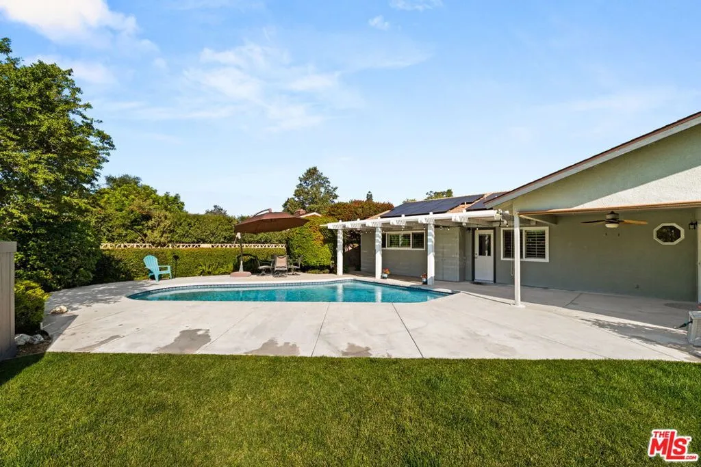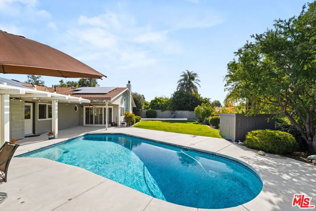 MOVEIN READY- Amazingly beautiful single-level family home with pool in NORTH Claremont. Buyer benefits from FULLY PAID OFF NEW State of the Art SOLAR PANELS (INSTALLED IN 2025). March's electric bill for this large house with a pool used by family of 4 was only $85 for the entire month. As you pull up to this listing, you will feel immediately at home. This single story home was recently renovated and is located in the very desirable North Claremont with a park just down the block. The home appeals to all ages and is a family charmer. Enjoy the beautifully landscaped yards, both front and back, Milgard windows, and fresh exterior paint. A concrete pathway leads to an impressive brick surrounded main entry. Enter into the home's hardwood floor foyer. The main living areas have beautiful Italian tiles throughout. Enjoy the hard to find step-down formal living room that adjoins a very spacious dedicated dining area that currently sits 12 people comfortably in this dining space. The home comes with sleek newer plantation shutters throughout. The crown molding and baseboards are modern and elegant. The remodeled kitchen boasts custom cabinetry, granite countertops, terrazzo-tiled flooring, a built-in refrigerator, and stainless steel appliances, including dual convection ovens and a front-control gas cooktop on the center island. The island offers bar seating and connects to the family room with a stone fireplace, surround speakers installed throughout the home, vaulted ceiling, and sliding door to the peaceful backyard and luxurious pool. The hallway leads to a remodeled half bathroom, a full bathroom with custom cabinetry, matching quartz countertops, and vinyl flooring, with access to the pool. Four carpeted bedrooms with modern shutters and solid wood interior doors are down the hall. The primary bedroom features luxury vinyl floors, a walk-in closet with custom drawers, and a remodeled bathroom with dual sinks, a walk-in shower, and a separate toilet. Additional features include a dedicated laundry room with cabinetry/storage and direct access to a two-car garage with a workbench and storage. This home comes with two separate water heaters, one for each area of the home. The backyard is a private oasis with a covered patio, pergola, pool, large grass area, outdoor storage shed, perimeter planters, and block walls for added privacy. Upgrades include a newer roof, pool heater, HVAC system, and more. This home is across from Higginbotham Park with access to trails leading to the Claremont Loop and is close to downtown Claremont, The Claremont Club, and the Montclair Mall.