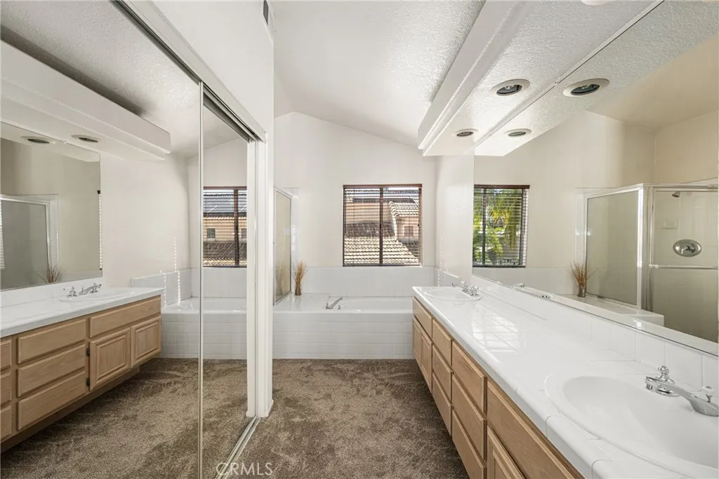 FIRST TIME ON THE MARKET. Centrally located in the desirable Alta Murrieta neighborhood. This pristine move-in ready home exemplifies pride of ownership and features the rare combination of Five Bedrooms and Four Bathrooms. Buyer peace of mind will be satisfied with key updates featuring Newer HVAC system, re-piped plumbing with PEX-A piping, newer carpet and Vinyl Plank flooring. The bright interior is enhanced by vaulted ceilings, abundant windows and a seamless flow between the living, dining, family rooms and kitchen. Newer sliding glass doors off the sunny breakfast nook and dining room provide backyard views and easy backyard access. A convenient downstairs bedroom and bathroom with walk-in shower offer excellent flexibility for an office, guest suite or multigenerational living. Additionally, fireplaces in the living room, family room and primary suite add warmth and ambiance to your living experience. The upper level includes a generous primary suite with spacious retreat area, fireplace, mirrored walk-in closet, an en-suite bathroom featuring a double vanity, separate tub and shower. Three additional bedrooms complete the second floor, including one with a private full bathroom and two that share a hallway full bathroom with two access options and a dual vanity. Additional property highlights include an interior laundry room, direct garage access, updated garage door, easy living low maintenance landscaping and a large newer backyard storage shed on a cement pad. No HOA. Convenient location offers proximity to schools, shopping, dining, parks and freeway access. Don’t Miss this Excellent Opportunity!!!