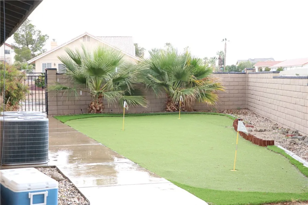 WOW! VIEWS! VIEWS! This home won’t last. *Home has a PAID OFF 30 panel solar system* Are you looking for your forever home that has amazing views? Well you have found it. The backyard that will give you resort vibes. Home has amazing mountain, multi-city, and sunset views. Imagine hosting a 4th of July pool party with the fireworks as your backdrop. Located inside a very desirable private gated community in Apple Valley. The property sits on a 1/2 acre corner lot. Low maintenance front and back yard landscape design. Front yard features a concrete horseshoe style driveway that leads you up to the garage. Double sided metal gate next to the garage to park your trailers, boats or toys. Pool and spa equipment is sheltered inside a pergola. Open floor plan with 3,187 SQFT. 4 bedrooms, where the 4th room can be utilized as a study or an office. 3 full bathrooms. 4 car garage with an extended workshop space that can hold an additional 1-2 cars or can be used as extra storage or gym. Beautiful flooring and a large open family entertainment room with an oversized window overseeing amazing views. The kitchen & dining room is truly elegant with the kitchen having amazing countertops, cabinetry, modern colors and design. The kitchen features stainless steel appliances which include double ovens, microwave, dishwasher and garbage compactor. The living room features a sleek and modern luxury fireplace. Living room also features a large corner bar with matching kitchen countertops to host all of your amazing parties and family functions. The laundry room is HUGE! The master bedroom is huge as well, featuring an amazing oversize fan and glass doors that lead you to the backyard. His and her sinks and large counter space. 2 huge walk in closets. The large master shower is amazing, with a drop down floor featuring a large modern window overseeing the backyard and mountain views. Master bathroom has its own private access from the backyard. Along with the priceless views, this beautiful fully landscaped backyard features an amazing private in-ground pool and a separate in-ground spa that is surrounded by turf. 2 separate covered patios with concrete and a BBQ that has natural gas connected to it. The left side of the backyard has turf and features a custom built miniature golf putting green with 3 holes. *THIS HOME IS BEAUTIFUL AND TRULY A PLACE TO CALL A FOREVER HOME* Don’t have an agent? That’s ok, contact me directly to view this home