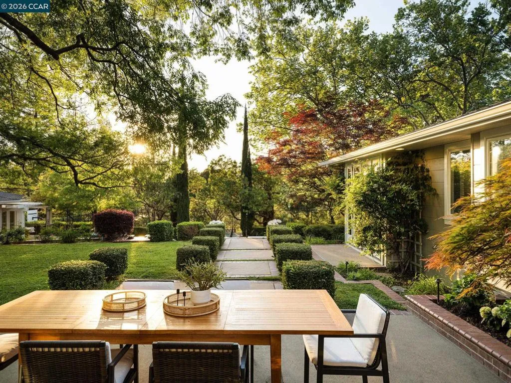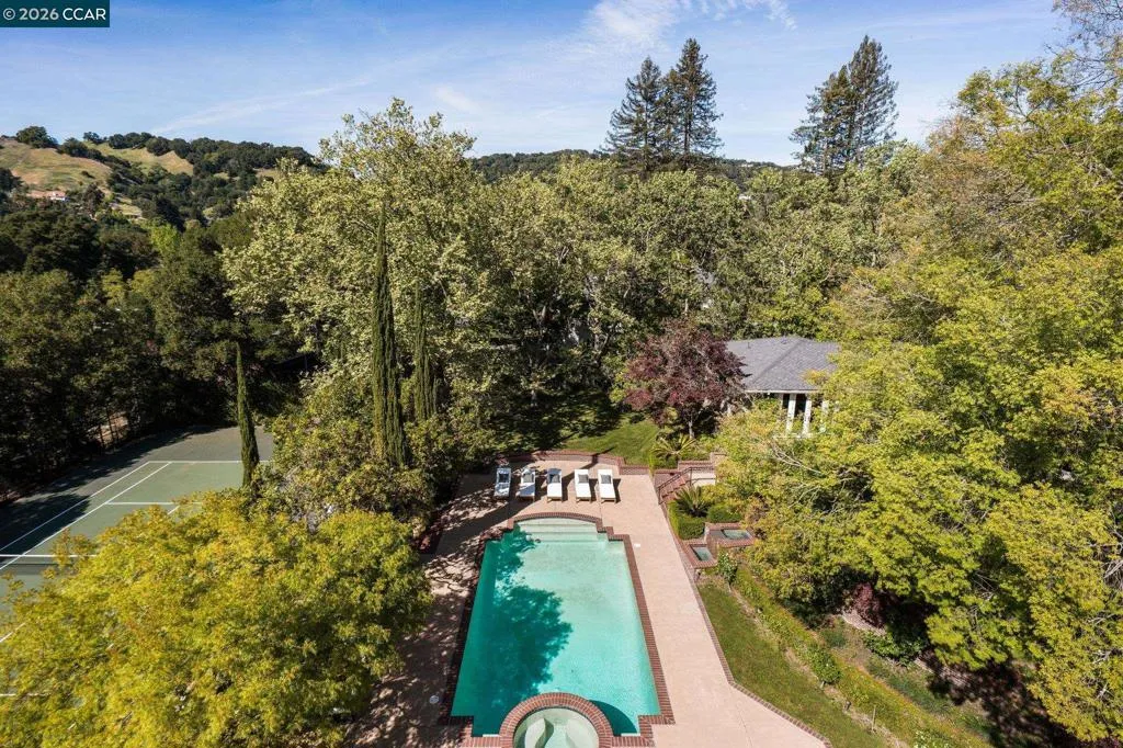 A Private World, Moments from Everything. Garden mornings, tennis afternoons, and evenings by the wine cellar await at this rare Sycamore Road property in Orinda. Set on 1.24 acres, this single level home features a main residence and a private one bedroom, one bath guest house, surrounded by mature landscaping, curated gardens, and fruit trees.Designed for both everyday living and elegant entertaining, the property offers seamless indoor outdoor flow with expansive grounds that invite gathering, recreation, and quiet retreat.A full size tennis court, pool, and wine cellar create a lifestyle rarely found in such a serene and private setting. Ample parking includes a circular driveway, an attached two car garage, and a detached one car garage behind a gate.Inside and out, the home reflects a timeless sensibility, unpretentious, refined, and deeply connected to its natural surroundings. Open spaces, abundant light, and thoughtful design make it equally suited for relaxed daily living or hosting on any scale.Private, timeless, and rarely available, this exceptional estate offers a unique opportunity to enjoy space, beauty, and convenience on one of Orinda’s most sought after streets.Close to top rated schools, Orinda Country Club, and commute.Addt'l details + floorplans 8SycamoreRd.