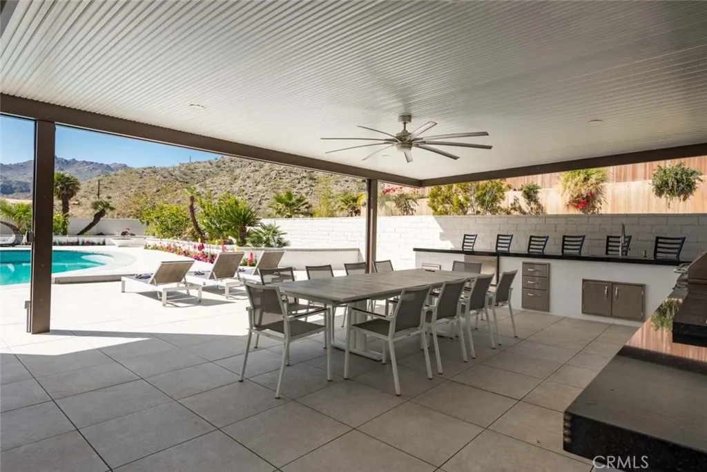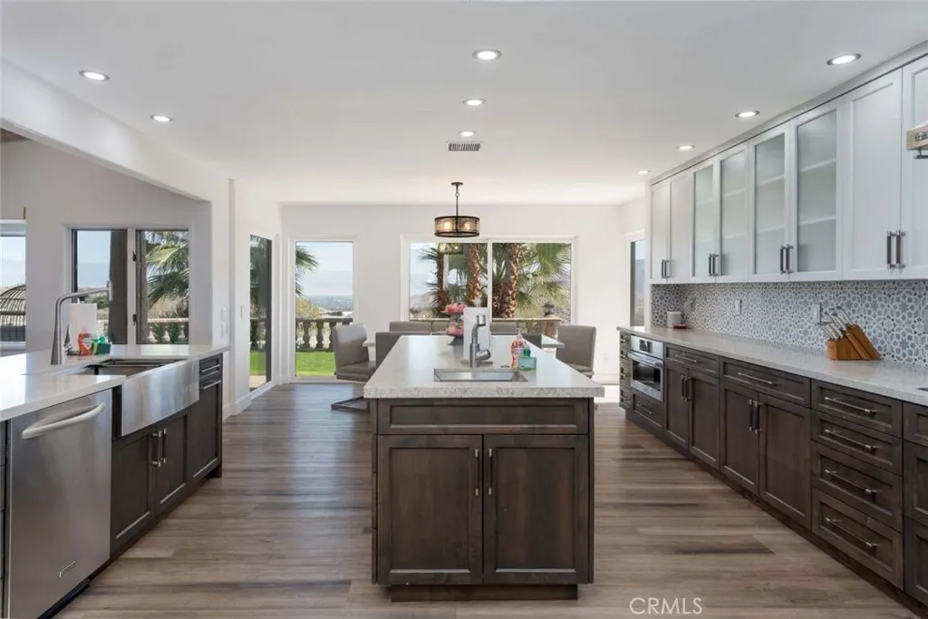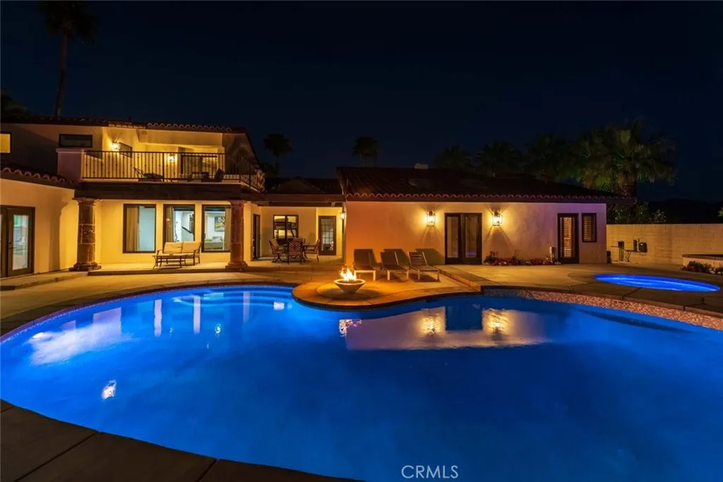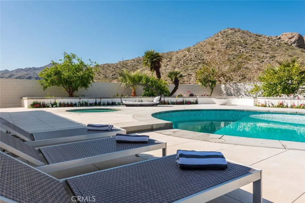 Welcome to this stunning gated estate located in the heart of Palm Desert, offering 4,663 square feet of refined desert living. This exceptional 5-bedroom, 4-bathroom residence combines timeless architecture with modern comfort, all set against a picturesque backdrop of mountain and valley views. A private gated entrance leads to an impressive arrival, where lush landscaping, mature palm trees, and elegant hardscape create a true sense of retreat. Inside, the home features a spacious open-concept layout with expansive living areas, high ceilings, and abundant natural light throughout. The thoughtfully designed floor plan seamlessly connects indoor and outdoor living spaces, ideal for both everyday living and entertaining. The gourmet kitchen is equipped with a large center island, ample cabinetry, and premium finishes, opening to a welcoming dining area with scenic views. The living room offers a warm yet sophisticated atmosphere, complete with designer touches and direct access to the outdoor grounds. The primary suite is generously sized, featuring a spa-inspired bathroom and private access to outdoor spaces. Additional bedrooms are well-appointed, offering flexibility for guests, office use, or multi-generational living. The backyard is a true resort-style oasis, featuring a sparkling pool and spa, expansive patio areas, and beautifully landscaped grounds, perfect for relaxing or hosting gatherings while enjoying the serene desert surroundings. Additional highlights include an attached garage, gated privacy, and a prime location close to shopping, dining, and world-class golf. A rare opportunity to own a private desert retreat with space, style, and breathtaking views.