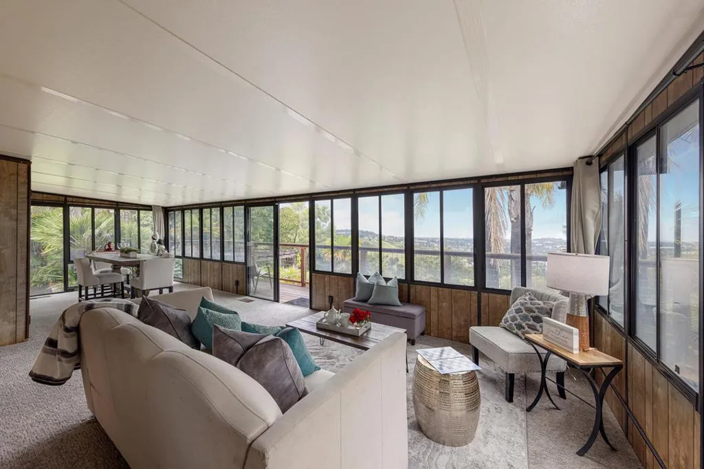 Experience the pinnacle of Peninsula living in the highly sought-after Haskins Estates neighborhood of Belmont. Situated on a quiet cul-de-sac, this private resort like residence offers an unparalleled lifestyle defined by security, serenity. Prepare to be captivated by 180-degree unobstructed views of the Bay, stretching from the iconic San Francisco skyline to the shimmering eastern and western spans of the Bay Bridge and the east bay as well. This unique home features two thoughtfully designed levels of living space; the main level serves as the heart of the home with the kitchen, dining, and living area that flows seamlessly to a spacious enclosed deck perfect for entertaining as well as 2 bedrooms and 2 baths, one being a spacious primary suite. The upper level offers a secluded retreat with a 3rd bedroom and full bathroom, complemented by its own private enclosed deck for quiet moments overlooking the spellbinding view. Your peace of mind is paramount, as the property is fully secured by an automatic gate, ensuring an exclusive and tranquil atmosphere. This is a rare opportunity to own a breathtaking residence that perfectly balances privacy and architectural charm with some of the most coveted views in the entire Bay Area.