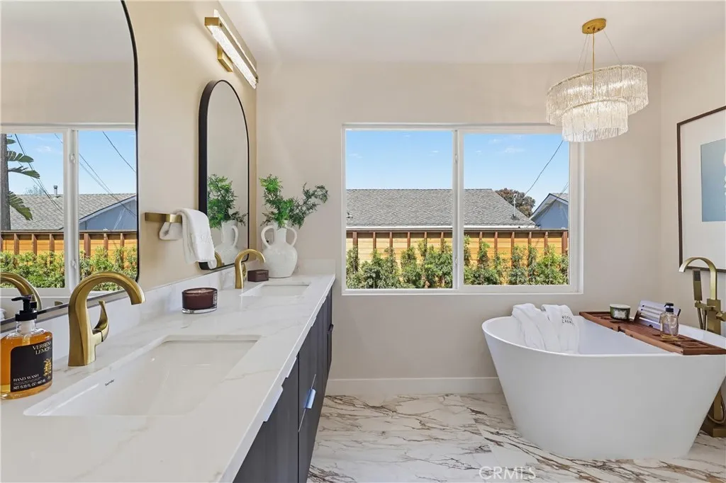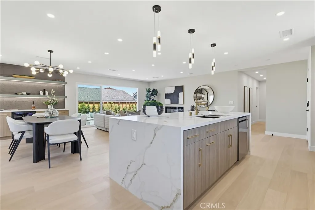Welcome to 5109 Paseo Del Pavon—“The Walkway of the Peacock”—a quiet and charming street in the highly desirable Upper Hollywood Riviera. This beautifully reimagined single-story home reflects the character and pride of ownership found throughout the neighborhood, offering a polished and sophisticated living experience. Bright, open living spaces are filled with natural light and designed for effortless indoor-outdoor living. The living and dining areas are thoughtfully connected and complemented by a built-in coffee and cocktail bar, creating an ideal setting for both everyday living and entertaining. A modern linear electric fireplace and custom-selected lighting add warmth and character, while central air conditioning enhances year-round comfort. The kitchen anchors the home with a clean, modern design, featuring Dune tile, black stainless steel appliances, a generously sized center island with bar seating, perfect for casual dining, entertaining, and everyday living, along with abundant custom cabinetry and a functional layout suited for both daily living and hosting. The primary suite offers a spacious and private retreat, complete with a beautifully appointed, generously sized bathroom and walk-in closet—an ideal place to unwind and relax. The additional bedrooms are well-proportioned and served by a beautifully finished secondary bathroom, while a dedicated laundry room adds convenience and functionality. The private backyard features a patio and lush grassy area, ideal for entertaining, recreation, and space for pets, or simply enjoying the South Bay lifestyle. Additional highlights include an oversized two-car attached garage with finished drywall, epoxy-coated flooring, and wired for EV charging, along with ample driveway parking. Located just steps to iconic Rocketship Park, a South Bay landmark known for its panoramic views, and within walking distance to Riviera Elementary, with convenient access to golf, dining, shopping, and the beach—an exceptional opportunity to enjoy the very best of South Bay living. Don’t wait on this one.