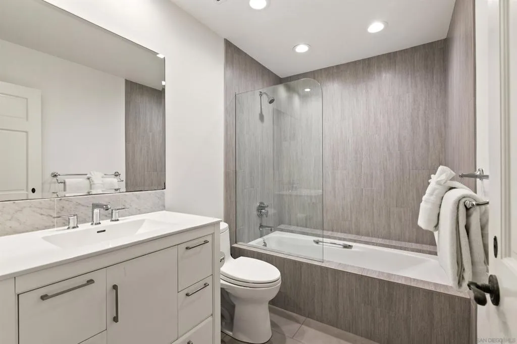 This freshly updated townhome is just one block from famous Windansea Beach, offering stunning ocean views and an unbeatable coastal experience. The open living, dining, and kitchen layout provides a seamless flow throughout the main level. The cozy living room invites you to unwind by the fireplace and enjoy your favorite shows on the flatscreen TV, while the adjacent dining area comfortably seats six and offers beautiful ocean views. Sliding doors lead out to a spacious deck, where you can dine alfresco with seating for four, perfect for soaking in picturesque sunsets over the water. The kitchen is light and bright, equipped with stainless steel appliances to make meal preparation easy and enjoyable. The primary suite features a luxurious king bed, flatscreen TV, and direct balcony access to enjoy the refreshing coastal breeze. The en-suite bathroom features a walk-in closet, a soothing soaking tub, and a separate shower. The second bedroom is spacious and includes a queen bed, a dedicated workspace ideal for remote work, and a flatscreen TV. A second full bathroom provides a convenient combo shower and tub. The third bedroom is set up as a lovely den, complete with a sleeper couch, fireplace, and flatscreen TV, creating a relaxed retreat atmosphere. There is also a downstairs patio with lush plants and seating for enjoying even more outdoor space. Additional amenities include a powder room for guests, laundry, BBQ for outdoor grilling, and a private 2-car garage, ensuring easy parking. This Windansea townhome is the perfect place to unwind, offering a unique blend of comfort, style, and unforgettable ocean views just steps from the beach. This is a vacation rental and prices are subject to change and negotiable on long term rentals.