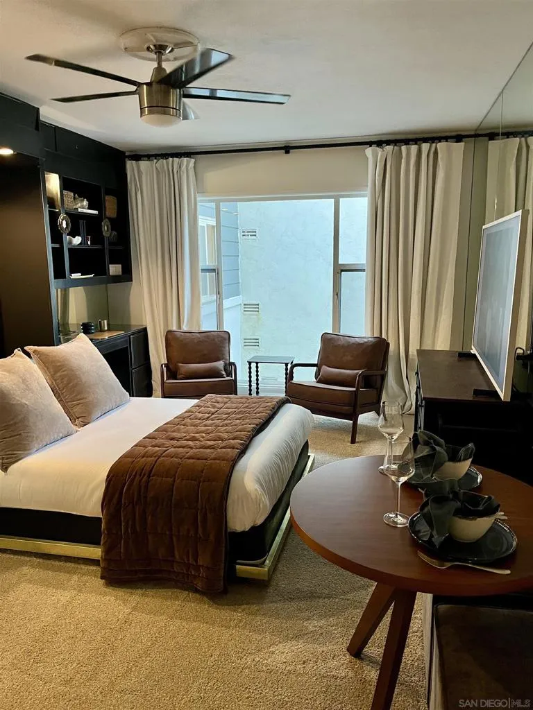 MID- & LONG-TERM FURNISHED RENTAL — La Jolla Studio with Private Beach Access Experience La Jolla from a truly rare oceanfront setting. This thoughtfully designed studio is available for mid- and long-term stays only and is located within an oceanfront complex offering direct access to the Pacific, a shared oceanfront patio, and a private beach experience just steps from the door. The studio features a smart, efficient layout with a queen Murphy bed that transforms the space from a comfortable sleeping area at night into an open living space during the day. Thoughtful furnishings create a cozy place to relax after time by the ocean. The compact kitchen includes a refrigerator, induction cooktop, toaster oven, and essential kitchenware—ideal for simple meals and easy evenings at home. Complimentary shared washer and dryer are available within the complex. While the studio itself is interior to the building, the outdoor experience is exceptional. From the ocean-facing exit, walk down six steps and open directly onto the Pacific. At high tide, the water sits just beyond the threshold, creating a unique, boat-like sensation. A shared oceanfront patio with seating offers front-row views of sunsets, tide changes, and marine life. Just steps in the opposite direction is Marine Street Beach, perfect for swimming, sunbathing, and peaceful shoreline walks. Sleeping Setup (max 2): Queen Murphy Bed 1 Bathroom Rates vary by season and length of stay. Please inquire for exact pricing and availability. NXT offers short, mid, and long-term furnished rentals throughout San Diego. View live