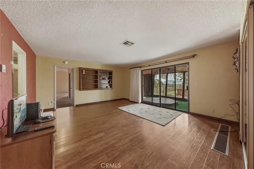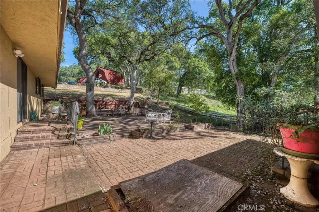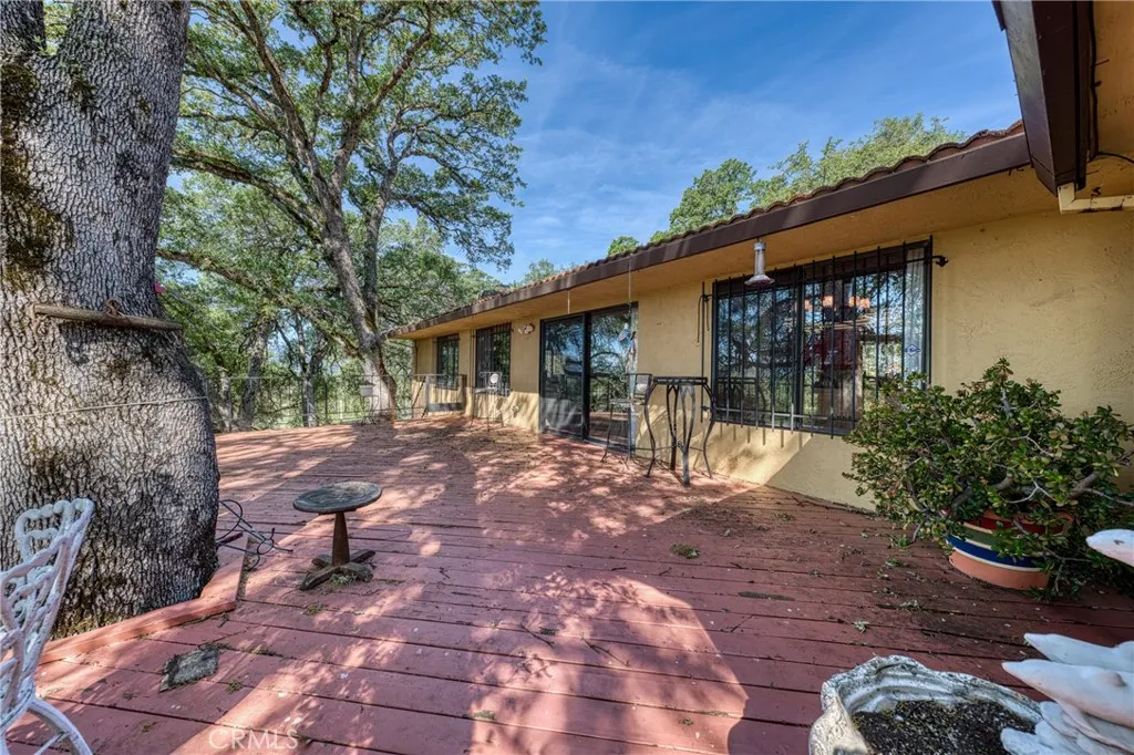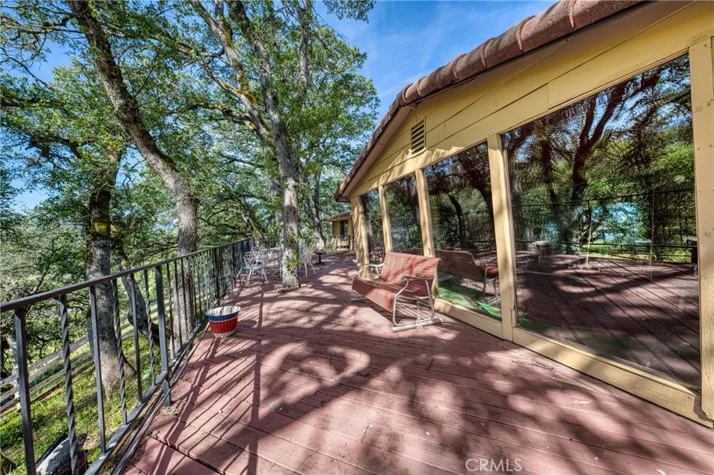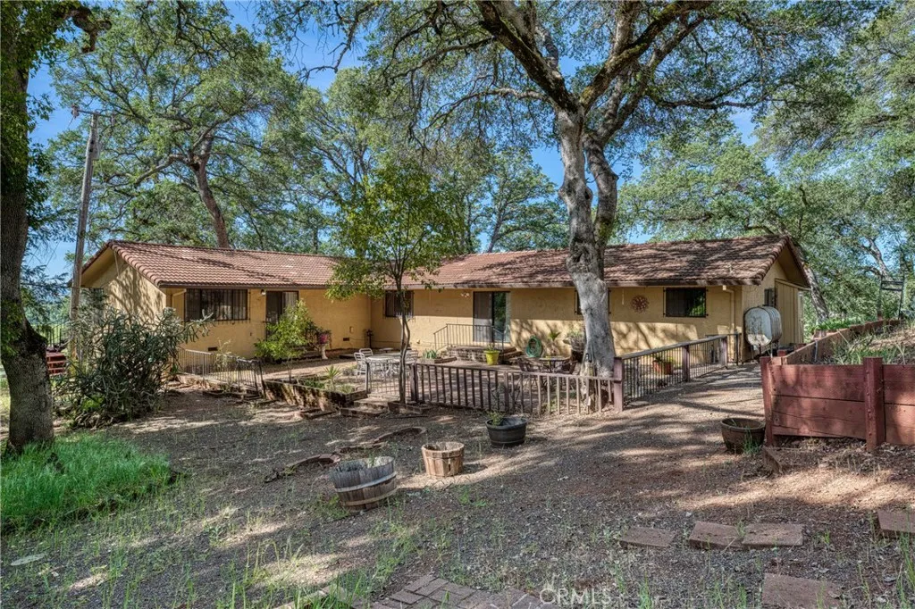 Escape to your own private oasis nestled on over five acres of scenic, fenced and cross-fenced land. This unique Spanish-inspired home welcomes you through an electric solar gate and along a lovely paved driveway, leading to a peaceful retreat designed for comfort, creativity, and country living. The property offers an impressive array of amenities, including a large barn/shop, multiple storage sheds, a travel trailer for storage, and a single-wide home ready for renovation or guest use (does need work). The beautifully landscaped yard enjoys ample shade from mature trees and features both a tiled, fenced front patio and an expansive wood deck and brick patio in the back—perfect for relaxing or entertaining. Step inside to discover warm custom woodwork, wood-laminate flooring, and abundant natural light. The inviting living room showcases a built-in fireplace, kerosene monitor heater, ceiling fan, and elegant wood beams. The spacious kitchen is a cook’s delight with a central island featuring an electric glass cooktop and indoor griddle, tiled countertops and flooring, a pantry, dual sink, oven, microwave, and generous cabinet space. The adjoining dining area offers easy access to the back deck through sliding glass doors. A versatile laundry/bar room includes a closet, sink, baseboard heater, and sliding door to the patio—ideal for use as a fourth bedroom, guest suite, or hobby space. It also provides access to a convenient ¾ bath with a walk-in shower. Down the hall, a full guest bath and guest bedroom offer comfortable accommodations for family or visitors. The primary suite is a true sanctuary, featuring vaulted ceilings, a walk-in closet with custom shelving, fireplace, monitor heater, and two sliding doors opening to both the front and back patios. The luxurious ensuite bathroom includes dual island sinks, two toilets, a deep soaking tub, walk-in shower, and an expansive vanity with built-in storage. Additional amenities include a hot tub room accessible from the suite, central heat and A/C, tiled roof, iron security bars on windows, exterior security cameras, public water, and a septic system. Experience the tranquility, charm, and functionality of this exceptional ranch property—offering a harmonious blend of rustic character and modern comfort in the heart of Upper Lake. (Buyer to verify square footage and age of home.)