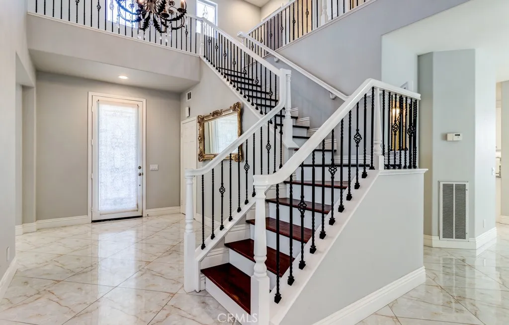 This exceptional single-family detached residence is located within the highly sought-after gated community of Oak Creek in Irvine. Beautifully upgraded throughout, the home showcases custom interior finishes and an abundance of natural light. A custom front door opens to a dramatic formal entry, setting the tone for the elegant interior. The main level features a versatile bedroom, formal living and dining rooms, and a spacious family room with a cozy fireplace. The gourmet kitchen is thoughtfully designed with a large center island with seating, granite countertops, a farmhouse sink, a double gas oven, a drawer microwave, and custom cabinetry featuring decorative glass and mirror accents. An additional casual dining area completes this inviting space. Notable upgrades include plantation shutters, stained glass accents, and designer lighting fixtures. Additional highlights include an interior laundry room, an attached two-car garage, and an extended driveway. Step outside to a generously sized backyard ideal for entertaining, featuring a built-in BBQ island, fire pit, covered patio, and mature fruit trees. Upstairs, Bedroom 4 offers flexible use as an office, guest room, or bonus space. The spacious primary suite boasts soaring ceilings, a large walk-in closet, and a luxurious en-suite bath with dual sinks, Carrara marble countertops, a soaking tub, and a walk-in shower. Secondary bathrooms are also elegantly upgraded. Residents enjoy resort-style community amenities, including an 11-acre park, two pools, tennis courts, basketball and volleyball courts, clubhouse, and spa. Conveniently located near the 405 Freeway, Oak Creek Elementary School, and the Irvine Spectrum, this home offers the perfect blend of luxury, comfort, and prime location. --