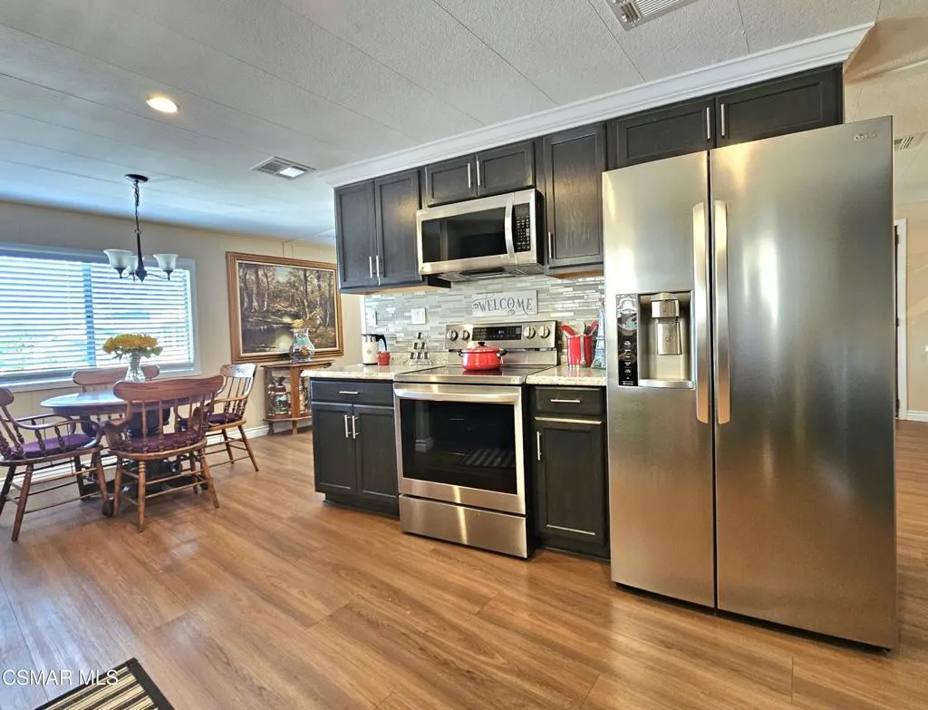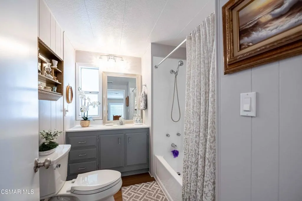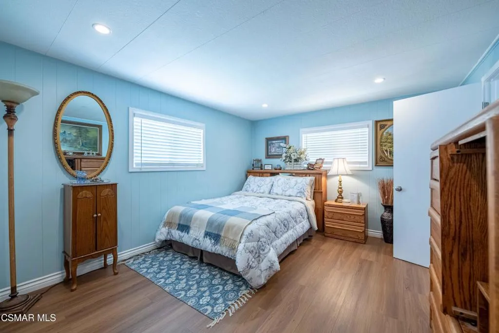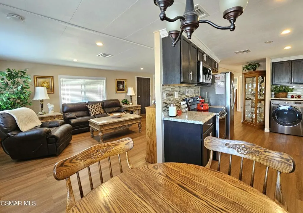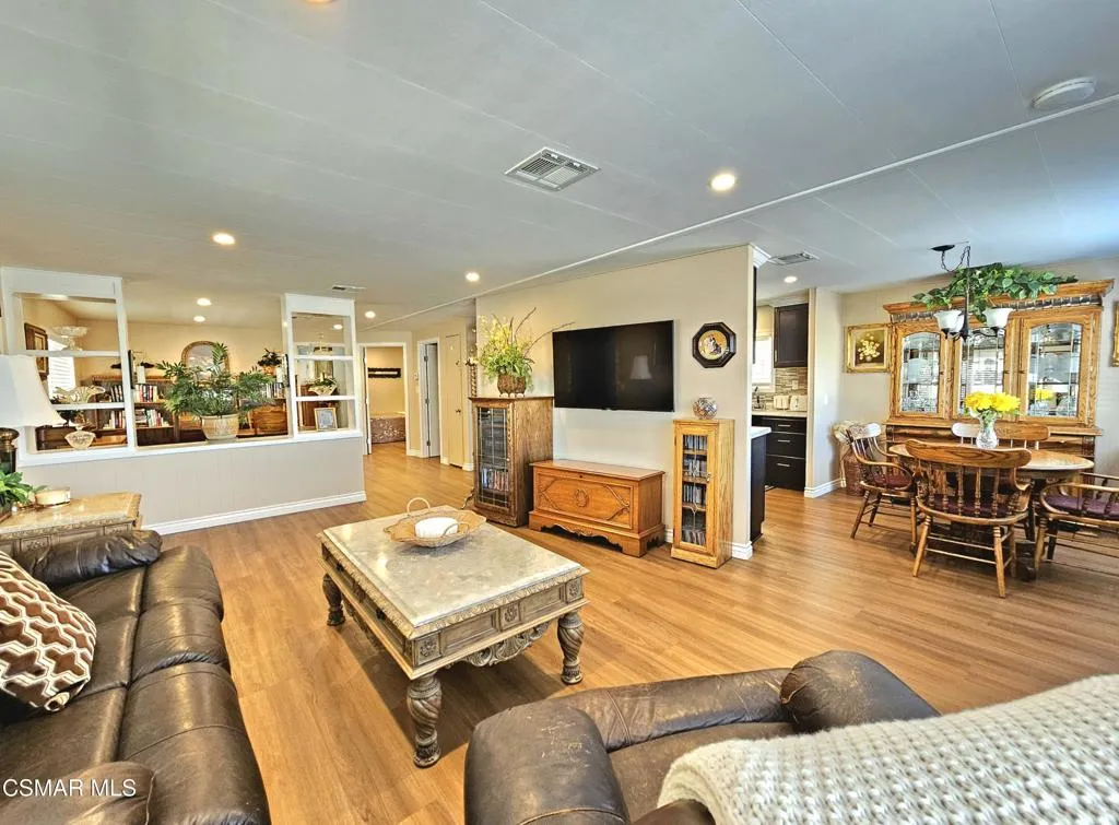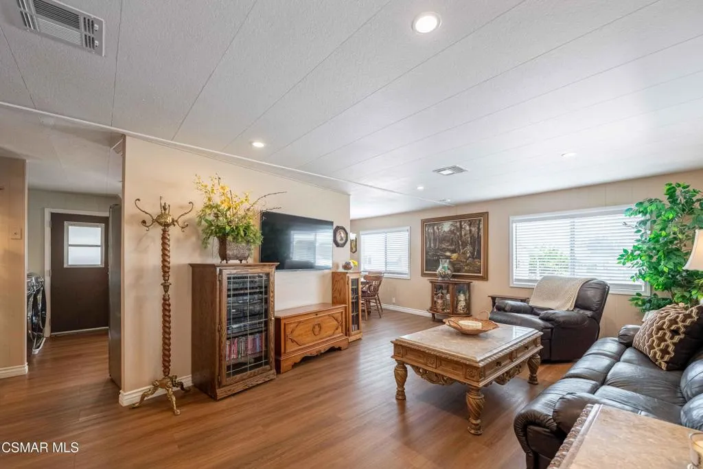 Welcome to Ventu Estates 55 and older senior park located in beautiful Newbury Park. This expertly remodeled home boasts exquisite attention to details throughout. Truly move-in ready with new landscaping and beautifully painted exterior offering a large porch to relax and enjoy your guests. Upon entering, you are welcomed by the spacious living area and amazing views of the mountains from the front windows. The popular floorplan offers luxury vinyl flooring, recessed/dimmable lighting, crown molding throughout and tastefully remodeled hallways with new doors, kitchen and laundry area complete with LG appliances. Live a simpler life in this quiet community while meeting new friends at clubhouse events or relaxing at the pool. Easy access to nearby grocery stores, malls, parks, the 101 freeway, and hiking trails.