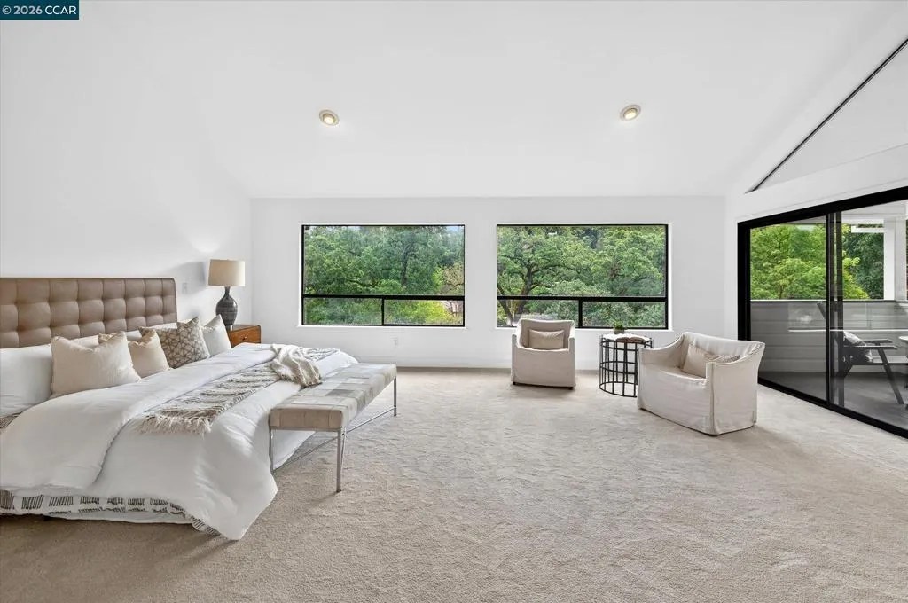 Elegant and light-filled, this contemporary South Walnut Creek home offers privacy, scenic beauty, and flexible living on .78 acres, offered with an adjacent 1.13± acre parcel (APN 188-170-027). The spacious primary suite is a true retreat with a private deck overlooking oak trees and rolling hills. Thoughtfully updated with fresh interior/exterior paint and owned solar, the home features refreshed bathrooms, including a fully renovated hall bath. Bright, open living spaces showcase refinished hardwood floors and new carpet, creating a warm, inviting setting ideal for everyday living and entertaining. The kitchen offers classic white cabinetry and granite countertops. A versatile floor plan with a separate entrance is perfect for an au pair, guests, office, or studio. This rare two-parcel offering provides expanded space and added privacy, with potential for a private estate or future possibilities under R-20 zoning (buyer to verify), just minutes from downtown Walnut Creek and Broadway Plaza.