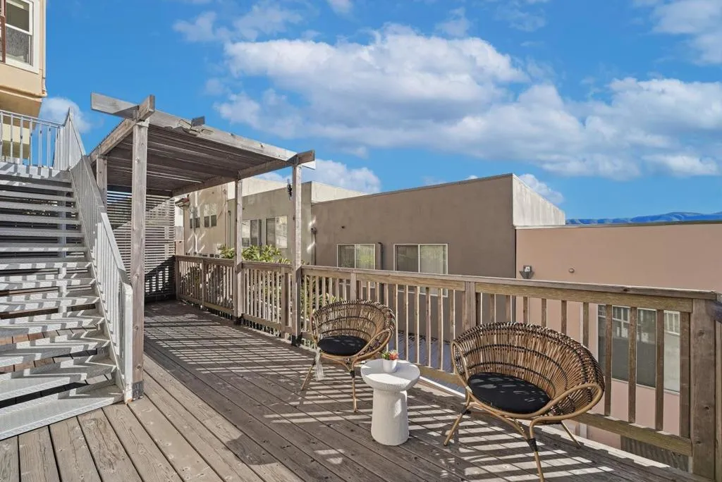 Bright, sun-filled corner home with LOW HOA and panoramic bay and city views from every room a rare combination in San Francisco. Large windows and multiple exposures bring in natural light all day, creating an open and comfortable living space. Enjoy the view from your private deck, perfect for relaxing or unwinding after work. The home features a multi-level townhome-style layout with two spacious suites, each with its own bathroom, ideal for privacy, guests, or shared living. High ceilings, a gas fireplace, and a bright, airy layout enhance both comfort and livability. Well-located for every lifestyle easy access to Highway 101, Caltrain, and Muni for a smooth commute to downtown SF, the Peninsula, and SFO. Tucked away in a quiet, private setting, yet just minutes to Dogpatch, Potrero Hill, Hmart, and outdoor spaces like Candlestick Point State Recreation Area for trails, water, and fresh air.