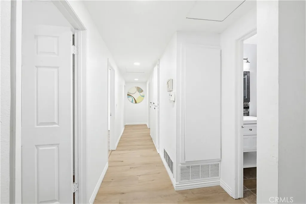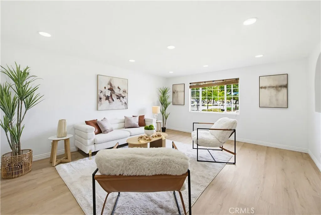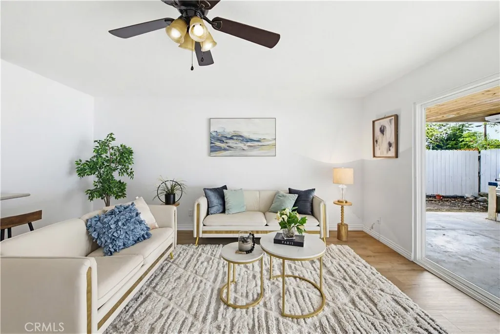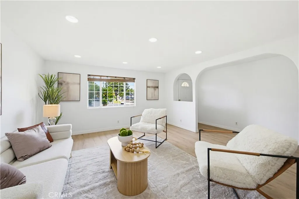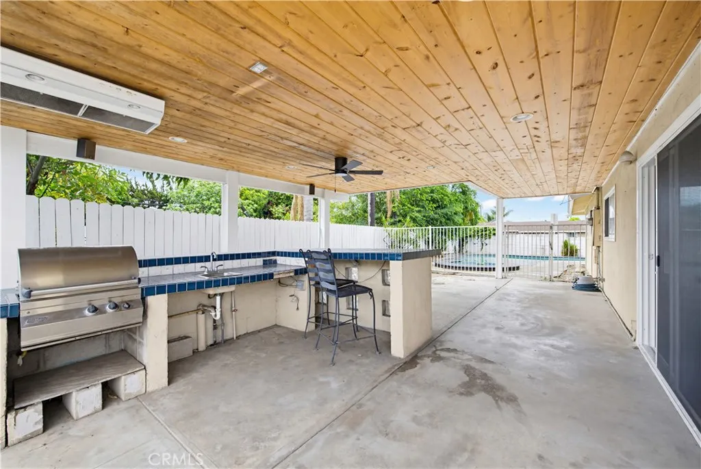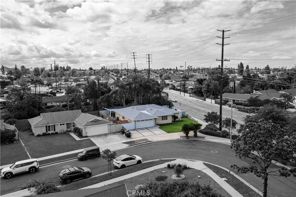 Upgraded interior, set on an expansive 10,000 sq ft corner lot, showcasing a refined backyard with a covered patio, heated pool and built-in BBQ area—offering a level of outdoor living rarely found in comparable single-story homes. The interior unfolds with a bright, open-concept layout, enhanced by new Mount Vernon luxury vinyl flooring that extends seamlessly throughout the entire home, paired with eggshell white designer paint, new baseboards, and an expansive layout for flexibility in design while maintaining a clean and modern aesthetic. Flooding the home with natural light, the kitchen presents a functional design, anchored by natural wood cabinetry that offers generous storage and timeless character. A well-positioned gas range serves as the culinary focal point, complemented by stainless steel appliances and ample counter space that supports everyday cooking offering an open connection to the dining area, creating an inviting environment. In the attached garage, you’ll find washer/dryer hookups along with additional cabinetry, offering practical storage solutions. The guest bathroom featuring a sleek white vanity paired with brushed nickel fixtures, a detailed mosaic backsplash, a large framed mirror, an enclosed shower with sliding glass doors, warm-toned tile, a built-in niche, and a bench for added comfort. The primary suite offers a spacious walk-in closet and an en-suite bathroom complete with a separate soaking tub, a glass-enclosed shower, and warm tile tones that create a spa-like setting. Each additional bedroom reflects the same cohesive design, enhanced by newly installed baseboards and fresh designer paint that flows seamlessly throughout. Open the brand-new sliding door, extending the living experience outdoors to the covered patio with a BBQ and bar area beneath a wood-finished ceiling and recessed lighting, along with a fire pit, highlighted by a heated pool that serves as the centerpiece of the backyard with a yard of this scale providing openness and versatility. Positioned on a desirable corner lot within a roundabout, the property benefits from increased space, curb presence, and ample parking. Major system upgrades include a new roof, new HVAC system, new furnace, double-pane windows, and a newer water heater—offering added confidence & long-term efficiency. This residence presents a compelling combination of indoor comfort, outdoor versatility, and a strong foundation for both immediate enjoyment and long-term value.