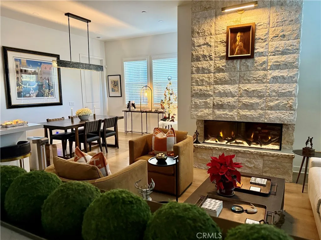 Stunningly appointed single-story 2-bedroom, 2 bath plus a den residence located in the highly sought-after Haven 55+ community of Rancho Mission Viejo. This exquisitely curated sanctuary showcases intentional design, thoughtful details, and over $170,000 in high-end upgrades, creating a truly elevated living experience. The home features a fully upgraded kitchen with refined finishes, enhanced quartz surfaces, and premium hardware, all seamlessly integrated into a sophisticated open-concept layout. Rich, luxurious hardwood flooring flows throughout, complemented by recessed lighting that creates a warm and inviting ambiance. At the heart of the home, a striking stone fireplace featuring hand selected stone imported from Europe serves as a dramatic focal point, blending timeless elegance with modern comfort. Both bathrooms have been beautifully remodeled with spa-inspired curbless showers and premium glass enclosures, offering a sleek, contemporary aesthetic with exceptional functionality. Step outside to a professionally designed outdoor retreat, complete with expansive porcelain pavers, an upgraded sprinkler system, and serene Italian-inspired water features in both the front and rear patios ideal for relaxing or entertaining. Additional highlights include a fully paid solar system, custom iron front gate with stonework, custom iron rear awning, designer window shades, and a highly upgraded garage featuring epoxy flooring, a barn door accent, freestanding work sink, built in shelving, and enhanced lighting. Every element of this home has been thoughtfully curated, blending artful design with everyday livability. Seller may consider selling furnished (excluding personal and family art), with select pieces from RH, Arhaus, and Williams Sonoma offering a rare opportunity to acquire a truly turnkey, design-forward residence. Experience the best of Rancho Mission Viejo living with top-tier amenities just outside your door. The community offers a fitness center, swimming pools, parks, playgrounds, animal pasture, and an event barn. For residents 55+, enjoy exclusive access to the Perch, which features a pool with lap lanes, a spa, fire pit, outdoor dining area with barbecues and cabanas, and a variety of social spaces for gatherings. An extraordinary residence that has true beauty and craftsmanship that is a MUST SEE!