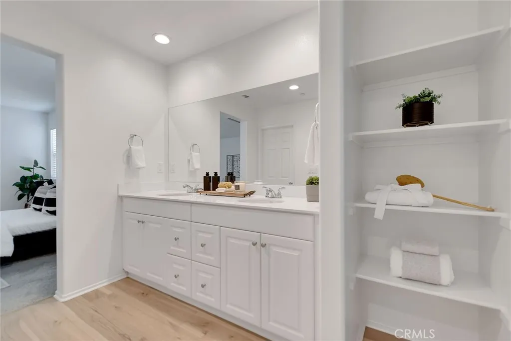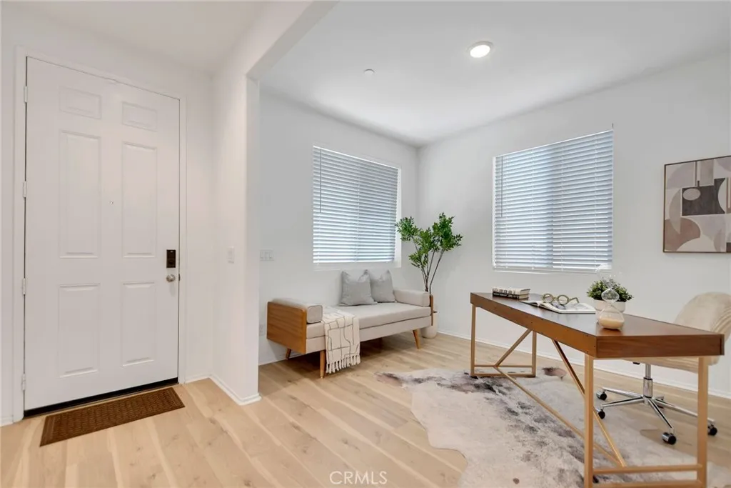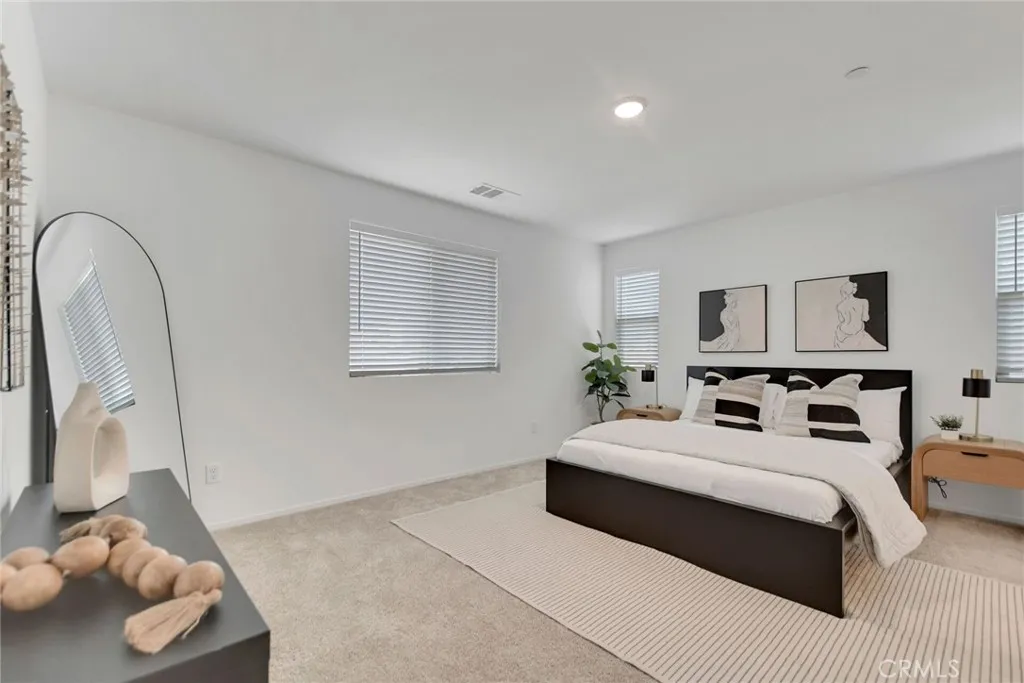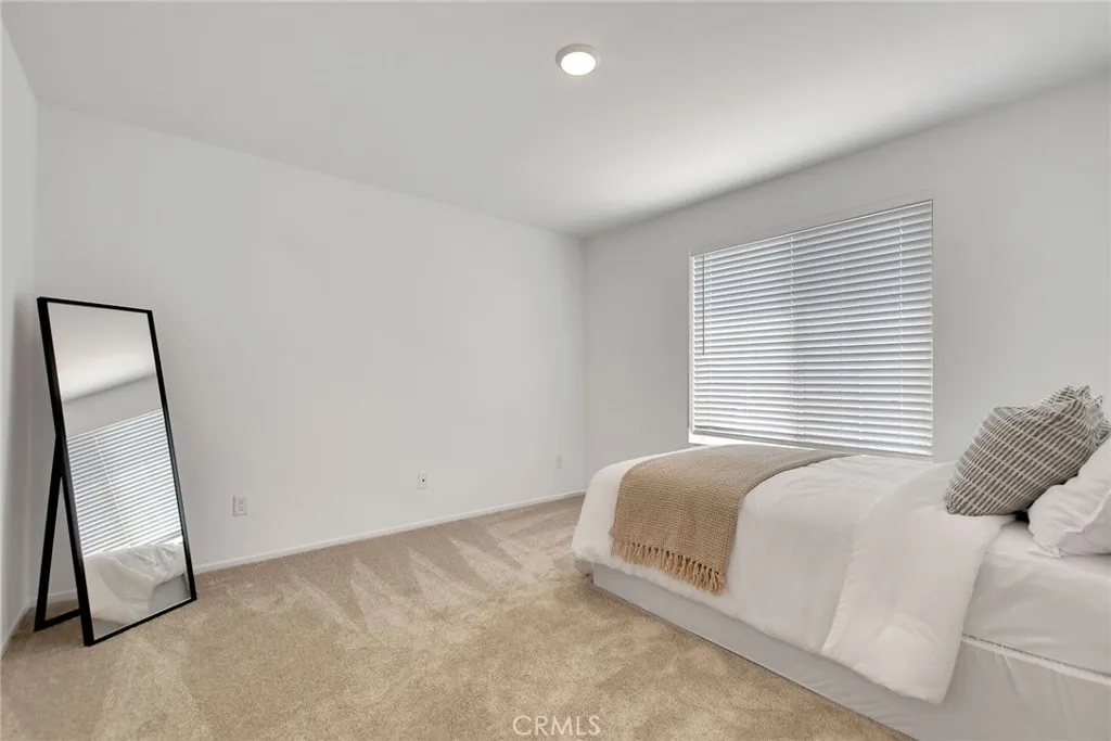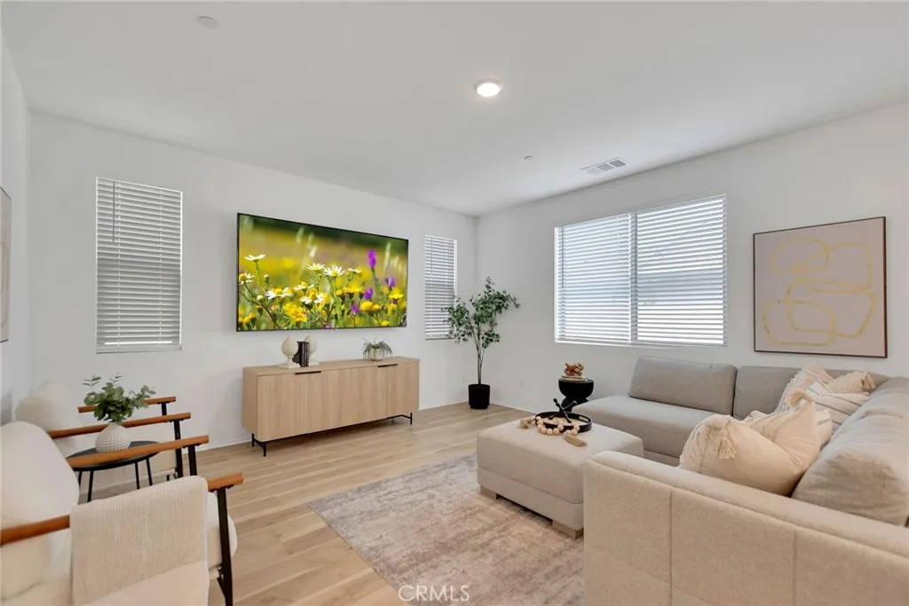 Only 2 years old in a gated community!! This nearly new beautifully upgraded home offers all the benefits of new construction without the wait, plus a completed backyard ready to enjoy. From the moment you arrive, you’ll appreciate the inviting curb appeal highlighted by a charming front porch. Step inside to an abundance of natural light and a thoughtfully designed floor plan. Just off the entry is a versatile den, ideal as a home office or easily convertible into a 4th bedroom. Continue down the hall into the expansive great room where the family room, dining area, and kitchen seamlessly come together—perfect for both everyday living and entertaining. The kitchen is a true centerpiece, featuring an oversized island, ample cabinetry and counter space, stainless steel appliances, elegant hardware, and a spacious walk-in pantry. A convenient mudroom and guest half bath complete the main level. Step through the large sliding glass door to your newly installed lush backyard—already finished so you can relax and entertain immediately. Upstairs, you’re welcomed by a flexible loft space, perfect for a second living area, playroom, or office. The generously sized primary suite is privately situated on one side of the home, offering a peaceful retreat. The primary bathroom features dual sinks, an oversized walk-in shower with built-in niche shelving, and a large walk-in closet. On the opposite side, you’ll find two spacious secondary bedrooms along with a shared hall bathroom featuring dual sinks and a shower/tub combination. A dedicated laundry room upstairs adds everyday convenience. Additional highlights include solar panels for energy efficiency, prewiring for pendant lighting above the kitchen island, ceiling fan prewiring in all bedrooms, and plumbing ready for a laundry room sink. Enjoy the benefits of a thoughtfully planned community featuring a neighborhood tot lot and picnic area—perfect for outdoor enjoyment for family and friends. Conveniently located near Renaissance Marketplace with shopping, dining, and a movie theater, and offering easy access to the 10, 210, and 215 freeways for commuting. This home truly checks all the boxes—modern, move-in ready, and designed for comfort and functionality.