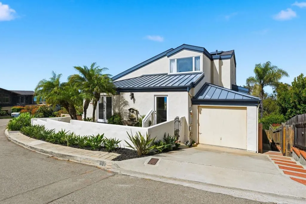 Where the turf meets the surf and offered for the first time, this one-of-a-kind property presents a rare opportunity in the historic town of Olde Del Mar. Originally built in 1954 and thoughtfully reimagined in 1985, this three-bedroom ocean-view home features expansive windows and a generous balcony, which invite the desired blend of indoor and outdoor living. The upstairs primary bedroom, with its own private balcony, is a true sanctuary, and there is also an extra den for a potential home office or gym; leave the space up to your imagination. Adding even more value and flexibility, the property includes an attached one-bedroom guest apartment with a separate entrance, perfect for guests or potential rental income. Both the main home and guest unit are equipped with their own washer and dryer, offering convenience and independence. The design of this unique home provides both privacy and functionality, making it ideal for everyday living or hosting guests. Perched above a stunning canyon with sweeping 180-degree views of the North County San Diego coastline, this home truly captures the charm of Olde Del Mar.