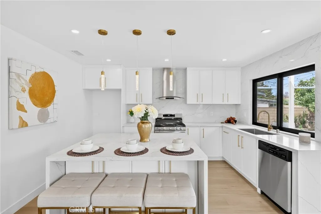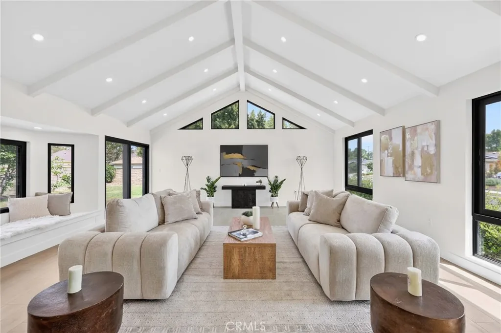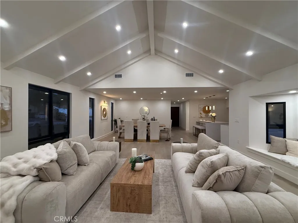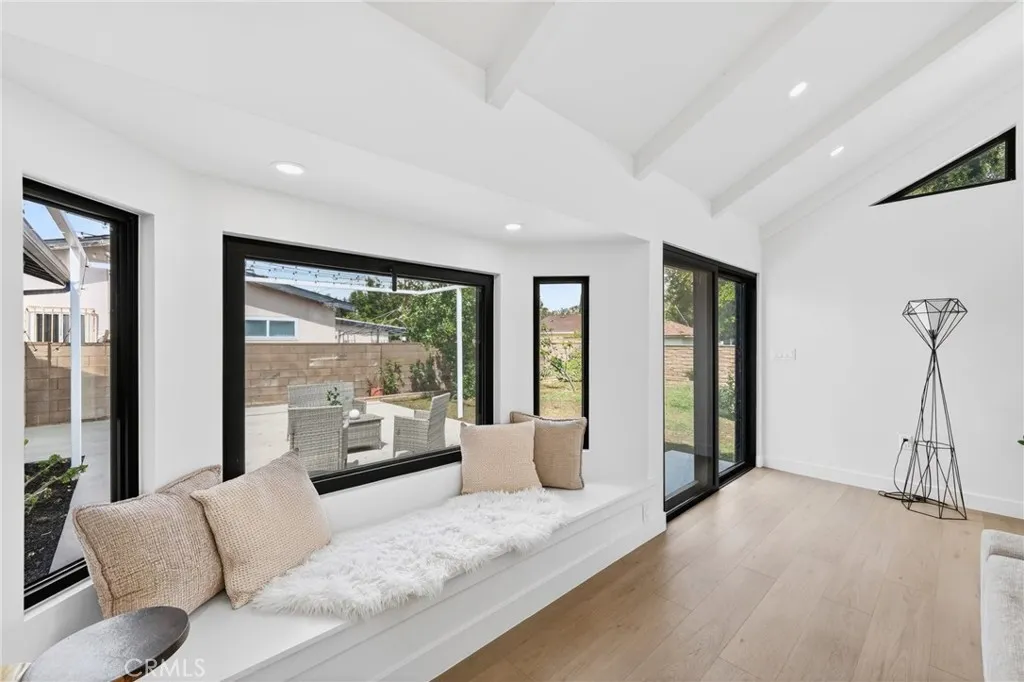 16231 Septo Street: four bedrooms, three bathrooms over 2000 SF living space and large 7300 SF lot in desirable Granada Hills neighborhood, open floor plan makes this charming residence a perfect blend of comfort for family. This home features two spacious Primary bedrooms, and a generous bright family room with vaulted beam ceilings. All new Inside laundry, New kitchen, new doors, new windows, three new bathrooms, New roof, new tankless water heater, new laminated flooring, new recessed lighting, central air and heat are just some of high points of this perfect, exceptional and entertaining home The two-car detached garage and large back yard offers great potential for an ADU which making this property very exceptional. The inviting living room is perfect for entertaining, large windows that allow natural light to flood the space from all corners of this room. Kitchen will offer new Quartz counter tops, all new appliances, along with plenty of new white European Slim Shaker Cabinets. The kitchen flows seamlessly into the dining room, ideal for casual meals or holiday gatherings and entertainments. All new Sliding doors lead to the serene backyard patio with all new ceramic tile, lush green yard and plenty of fruit trees which creating an inviting space for outdoor entertaining. Two primary Master Bedrooms make this property unique for comfort of in-laws or additional income if needed at any time. This Granada Hills gem is conveniently located near CSUN, schools, shopping destinations, freeways, and restaurants. See for yourself there is lot to say and to do here.