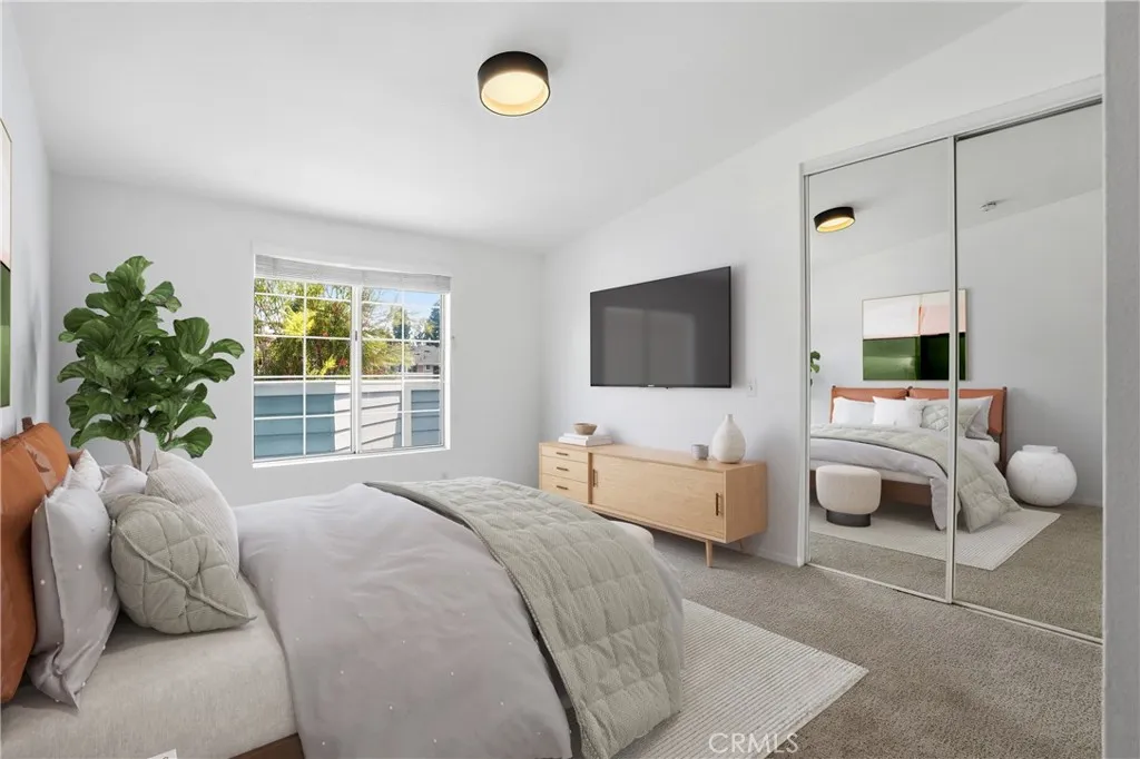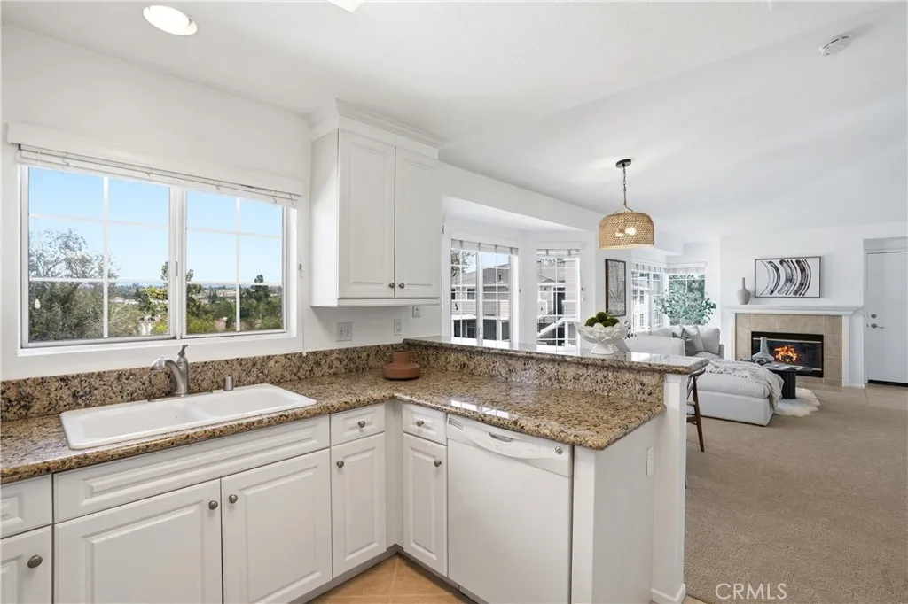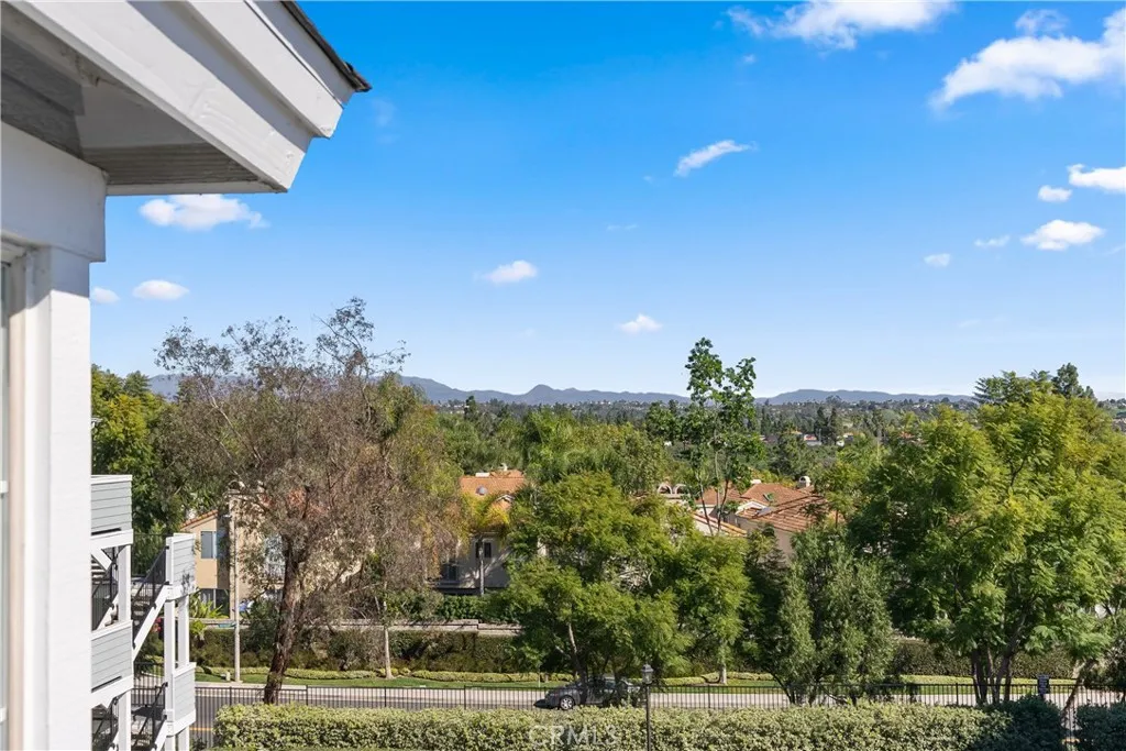 Spectacular mountain and city light views, abundant natural light, an open-concept floor plan, and a quiet location define this Aliso Viejo condo, creating a bright and inviting living environment with a wonderful sense of privacy and elevation. The main living area captures scenic views and a spacious feel, with an open layout designed for both everyday living and entertaining, while thoughtfully placed windows bring in natural light throughout the day. The interior features new carpet, freshly painted walls, and updated lighting accents, offering a clean, move-in-ready space with a neutral palette The kitchen includes granite countertops, ample cabinetry, generous storage, and a stainless steel refrigerator, with a layout that connects seamlessly to the main living area, making it ideal for daily living and gatherings while also capturing beautiful mountain views from the kitchen window. The bedrooms offer large closets, providing comfortable living space and functional storage. Positioned on the top level, the home benefits from added privacy, reduced noise, and elevated mountain views while maintaining a practical single-level layout. Just outside the front entry, a private balcony offers an additional outdoor space to enjoy fresh air and surrounding views, creating a quiet retreat separate from the main living area. A newer A/C unit installed in 2025 adds efficiency and year-round comfort. The home also includes a shared interior stair access leading to the garage level providing convenient covered access to your one-car garage and an assigned parking spaced for ease of living and everyday convenience. Community amenities include multiple pools and spas, clubhouses, a fitness center, and well-maintained greenbelts and open spaces. Ideally located near Aliso Viejo Town Center, shopping, dining, parks, and nearby hiking and biking trails, with Laguna Beach and coastal destinations just a short drive away, this home offers an exceptional combination of light, views, privacy, and convenience.