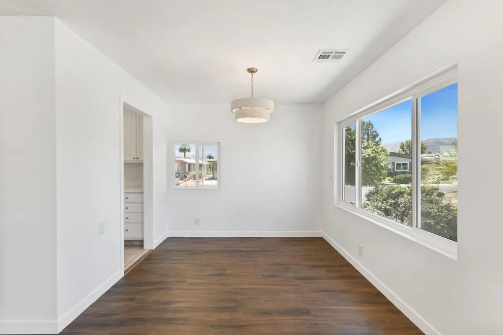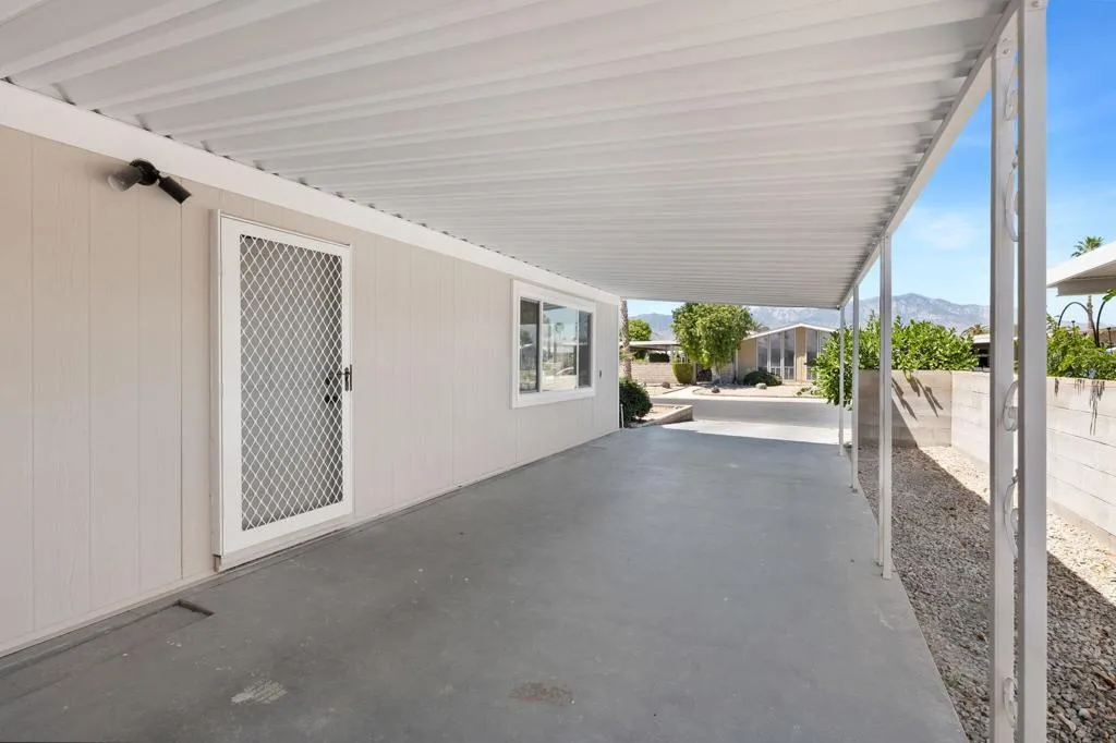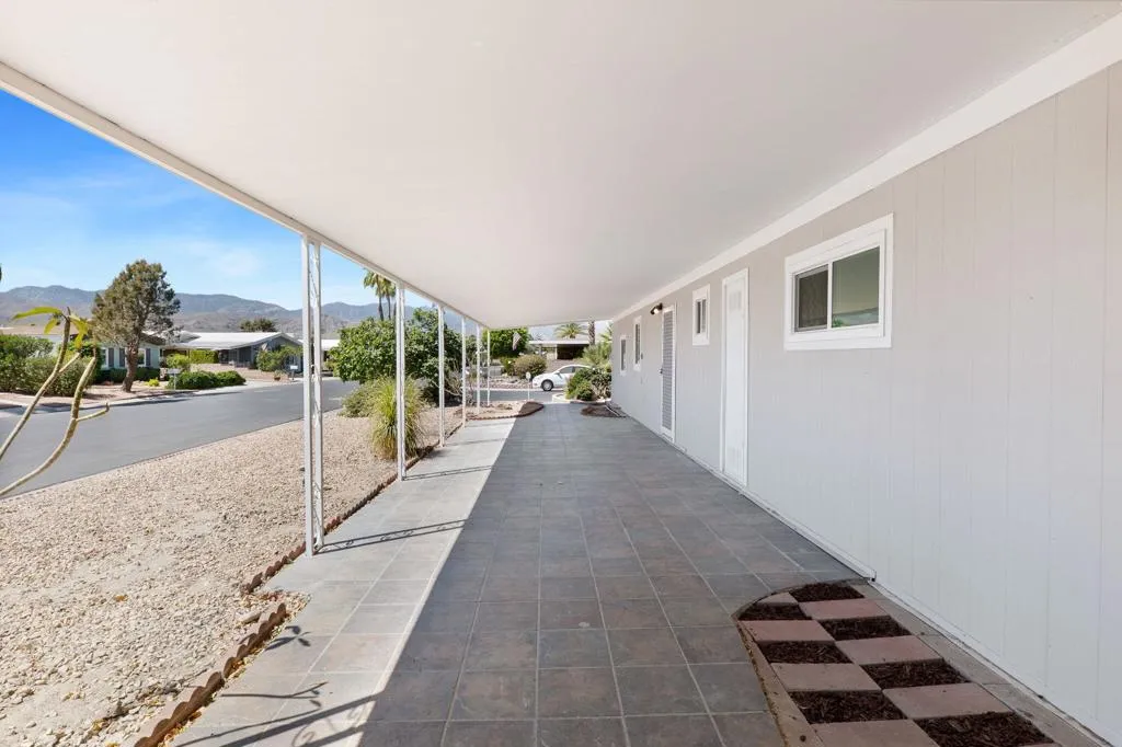 Discover this beautifully updated 3-bedroom, 2-bathroom manufactured home nestled in the vibrant Palm Desert Greens senior community. This residence boasts an abundance of modern features, including new dual pane windows, stunning quartz kitchen countertops, and a luxurious tiled shower with a glass door. Enjoy the sleek aesthetics of new bathroom vanities and outlets throughout, complemented by elegant 3 1/2 inch baseboards and 6 mm luxury vinyl plank flooring. Experience year-round comfort with a new 4-ton HVAC unit and a digital thermostat, while the fresh interior and exterior paint create a welcoming atmosphere. Additional highlights include new appliances, stylish interior doors, enhanced lighting with can lights and fixtures, and a secured permanent foundation. Residents can take advantage of incredible community amenities, including a clubhouse, bocce court, golf course, tennis courts, and security, all while enjoying convenient access to cable TV and waste collection included in the affordable HOA fees. Experience senior living at its finest in this great location!