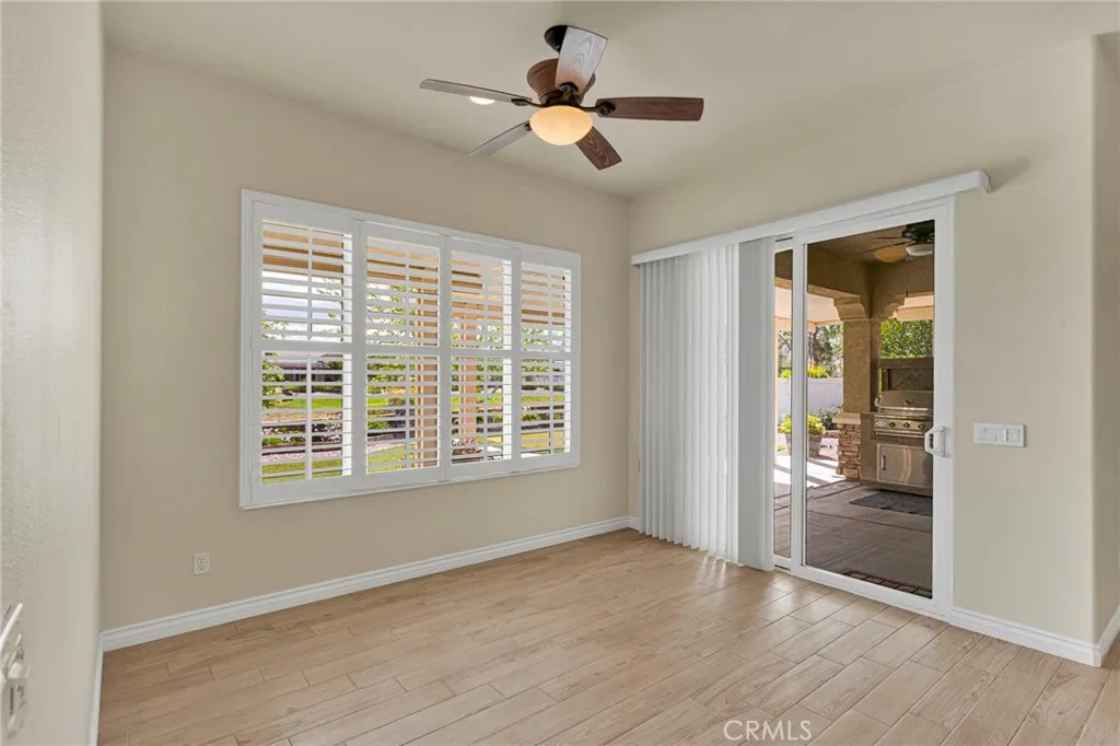 Homes like this don’t come up often—especially a Magnolia model with a private courtyard and golf course views in Sun City Apple Valley. This highly desirable Magnolia model offers 2 bedrooms, 2 bathrooms, plus a den/office, and 1,870 sqft of thoughtfully designed living space—ideally located near the Aspen Clubhouse and guard gate for everyday convenience. A true standout, the private inner courtyard creates a rare indoor-outdoor living experience—perfect for quiet mornings, relaxing evenings, or entertaining guests in a secluded setting. Inside, the home features wood-look tile flooring throughout most of the living areas, a spacious primary suite, and a generously sized guest bedroom, along with a versatile den/office space to fit your lifestyle, and plantation shutters. The kitchen is built for both function and hosting, complete with an electric cooktop, double oven, and a walk-in pantry. Comfort is elevated with remote-controlled ceiling fans in every room and a dedicated mini-split A/C system in the primary bedroom for personalized climate control. The backyard is designed to impress, featuring golf course views, an extended Alumawood patio cover, a fully equipped outdoor grilling station with a mini fridge, and a turf putting green—perfect for relaxing or entertaining. A tandem 3-car garage is another standout feature that adds flexibility for storage, vehicles, or hobbies. Enjoy resort-style living with access to indoor and outdoor pools, a fitness center, billiards room, and a full calendar of social events and clubs, all within the vibrant 55+ community of Sun City Apple Valley. Rare floorplan. Prime location. Lifestyle-driven living.