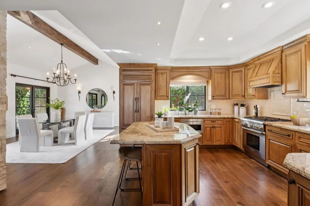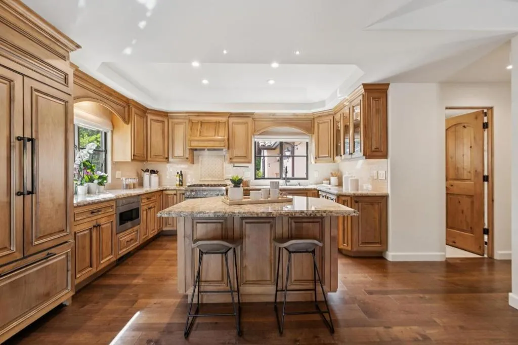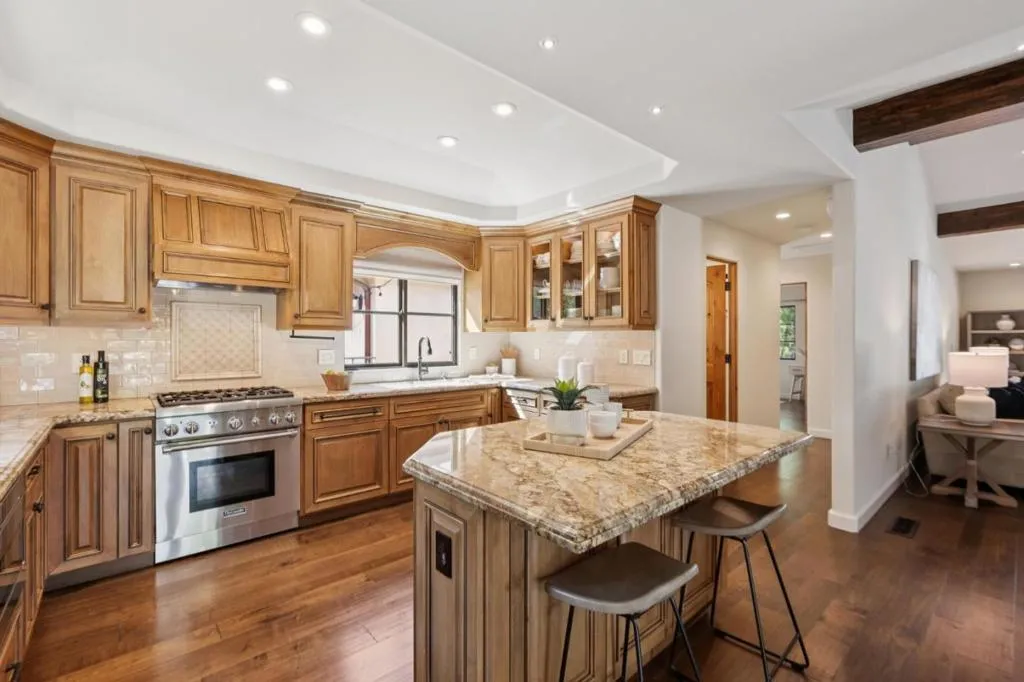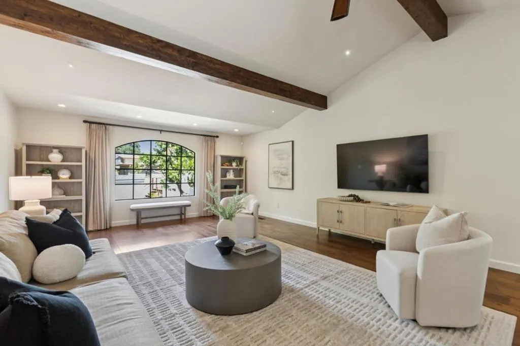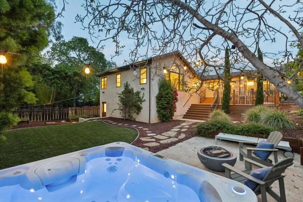 Welcoming Spanish architecture invites a peaceful ambience in Daves neighborhood! Paver stone driveway & travertine patio create beautiful backdrop to lovely property rebuilt in 2017. Generous great room & spacious dining rm w/ vaulted ceilings & dual sided limestone gas fireplace. Beautiful hwd floors flow thru interior & natural light thru lg picture windows & French doors. Out cove in dining room functions as perfect serving area w/ wine refrigerator. Kitchen blends classic materials-wood-stained cabinetry w/ granite counters & subway tile backsplash + center island. Professional grade appliances-Subzero refrig, thermador range & d/w. Primary suite has vaulted ceilings & abundance of natural light. Lg walk-in closet provides ample wardrobe storage & lovely bath has soaking tub, stall shower, dual vanities. 2 guest bedrooms have 2 closets each & share nice hall bath. Rear yard designed for both relaxation & entertaining. Lg elevated deck for outdoor dining & gathering. Meandering pathways thru garden. Jetted spa -perfect place to relax. Storage/bonus room is flexible space, accessed off lawn area. Oversized 2 car garage. Steps to Daves Elementary & quick stroll to Vasona & Oak Meadow Parks. Minutes to dwntwn LG & easy commute to Silicon Valley. Top Los Gatos schools!