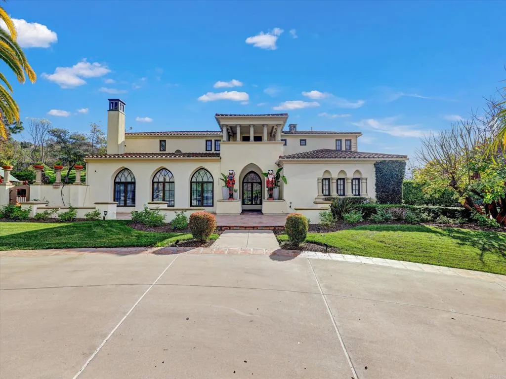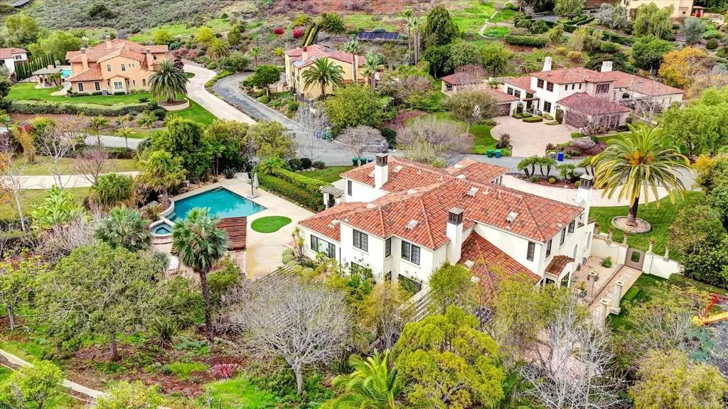 Experience an unmatched level of elegance in this Mediterranean Masterpiece located within the exclusive, guard-gated community of Cielo. Tucked away on a quiet cul-de-sac, this estate boasts a rare certified organic citrus grove and a lush, tranquil rose garden. The interior features a grand first-floor primary suite and a versatile floor plan with an overabundance of secondary rooms, perfect for dual home offices or a private gym. Located within the prestigious Roger Rowe School district and the premier amenities of Cielo, including tennis courts, a fitness center, and an Olympic-sized pool. The home itself is an entertainer's dream, featuring, multiple lounging areas, and a private pool and spa. Enjoy the ultimate Southern California lifestyle with a resort-style pool and spa, a massive outdoor kitchen, and fully paid home and pool solar