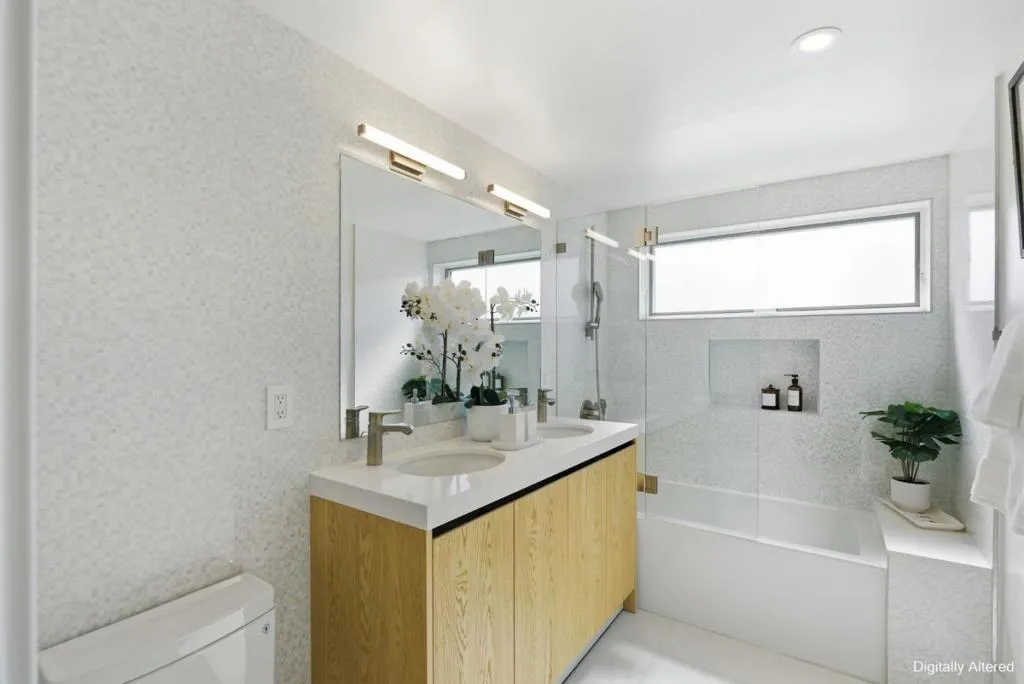 This contemporary masterpiece, built in 2019, showcases exceptional quality and design in sought-after Midtown. Security and privacy are a hallmark of the design beginning with a gated and fenced front courtyard that defines a spacious area for entertaining and play. Large format tile and European white oak floors unify the entire home with sleek modern style. and retractable glass wall to the very private rear yard, plus a fabulous designer kitchen with The floor plan is open and flowing with a formal dining area, spacious living area with 7.1 surround sound island counter seating. A separate office with workstation for two plus a bedroom with en suite bath rounds out the main level. Upstairs is a luxury primary suite plus two bedrooms and a bath along with the laundry room. Added features include solar power, security, surveillance, keyless entries, Nest, Aiphone intercom, synthetic front and rear lawns, and a standing seam metal roof. Excellent Palo Alto schools.