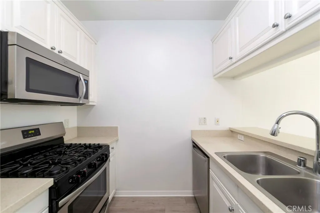Bright and airy first-floor condominium located in a desirable 55+ senior community, featuring a private patio perfect for relaxing. This well-maintained home offers durable hard-surface flooring throughout and fresh interior paint, creating a clean and inviting atmosphere. The functional floor plan includes two spacious bedrooms and two bathrooms. The kitchen is thoughtfully updated with quartz countertops, white cabinetry, and stainless steel appliances, providing both style and convenience. Residents enjoy a secure, gated entrance with coded access in this beautifully maintained Mediterranean-style community. Amenities include elevators, a community room with kitchen, a recreation room, a sparkling pool and Jacuzzi, and a complimentary community laundry facility. Water and trash are included in the rent. The unit comes with one assigned parking space, along with ample guest parking. Ideally situated on Sepulveda Boulevard, this prime location offers easy access to grocery & drug stores, shopping centers, dining, the YMCA, and is directly across from the scenic Madrona Marsh Nature Preserve.