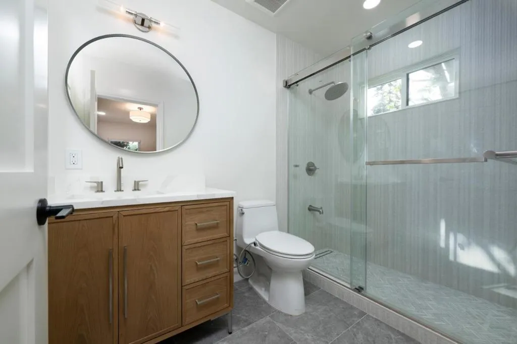 Experience refined Peninsula living in this exceptional single-family home just two blocks from downtown San Carlos, known for top restaurants, cafés, and boutique shopping. This approximately 3,000 sq ft home has been fully rebuilt with high-end finishes and abundant natural light, offering both convenience and a private, retreat-like feel. It features 4 bedrooms and 3.5 bathrooms, including a luxurious upstairs primary suite with spa-like bath and walk-in closet. Two additional upstairs bedrooms share a lounge area and flexible office/nursery space. The main level is designed for modern living and entertaining, with an open-concept kitchen, dining, and den, plus a butlers pantry, powder room, and direct backyard/patio access. A ground-floor guest suite adds flexibility. The formal living room opens to a landscaped side yard for seamless indoor-outdoor flow. Highlights include hardwood floors, stone and quartz finishes, high-efficiency appliances, new HVAC with A/C, Nest thermostats, Ring doorbell, keyless entry, Tesla charger, fire sprinklers, laundry room, and Hunter Douglas blinds. The finished garage with vinyl flooring offers bonus space for a gym, studio, or playroom. Prime location near Burton Park and top-rated San Carlos schools (tenant to verify).