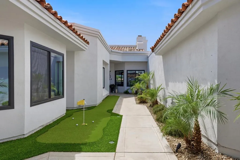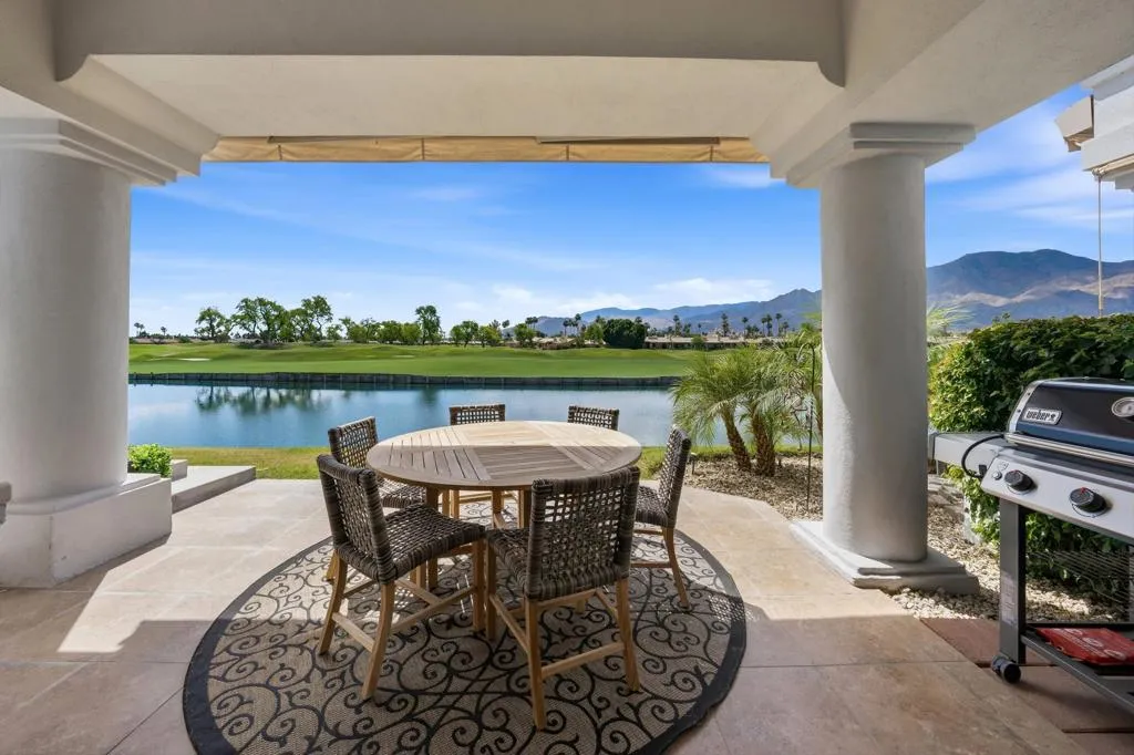 Located on the 5th fairway of the iconic PGA West Stadium Course, known as ''Double Trouble'' and host of The American Express, this fully remodeled and turnkey furnished home delivers one of the most sought after view corridors in PGA West with breathtaking south facing mountain, lake, and golf course vistas. This is true desert luxury living in La Quinta, where every detail has been curated to create a seamless, move in ready experience. Offered turnkey furnished including all kitchen items, bedding, towels, and accessories, this home is ready to enjoy immediately as a primary residence, second home, or investment property.Designed for both comfort and functionality, the floor plan features dual primary suites, ideal for hosting guests or maximizing privacy. The open concept interior is enhanced by hard surface flooring throughout, custom window coverings, and walls of glass that capture the dramatic scenery of the Stadium Course. The upgraded kitchen is equipped with KitchenAid appliances, generous cabinetry, and a large pantry, creating the perfect space for everyday living and entertaining. The back patio is designed for effortless outdoor living, featuring a BBQ and retractable awnings that provide flexible shade for relaxing or entertaining year-round. Extensive upgrades include all new windows and sliders along with two water heaters installed in 2021, offering modern efficiency and peace of mind. The private courtyard provides an additional outdoor retreat complete with a putting green, perfect for relaxing or entertaining under the desert sky. A 2.5 car garage offers ample storage and space for a golf cart, and the home is equipped with a security system for added convenience. The HOA enhances the lifestyle with comprehensive coverage including landscaping, roof, exterior insurance, cable, internet, 24 hour guard gated access with patrolled security, multiple community pools and spas, and more, creating a true lock and leave environment. This is a rare opportunity to own a fully remodeled, turnkey furnished home on the PGA West Stadium Course in La Quinta, combining premier golf course frontage, panoramic views, and a lifestyle centered around world class golf, dining, and the energy of the Coachella Valley.