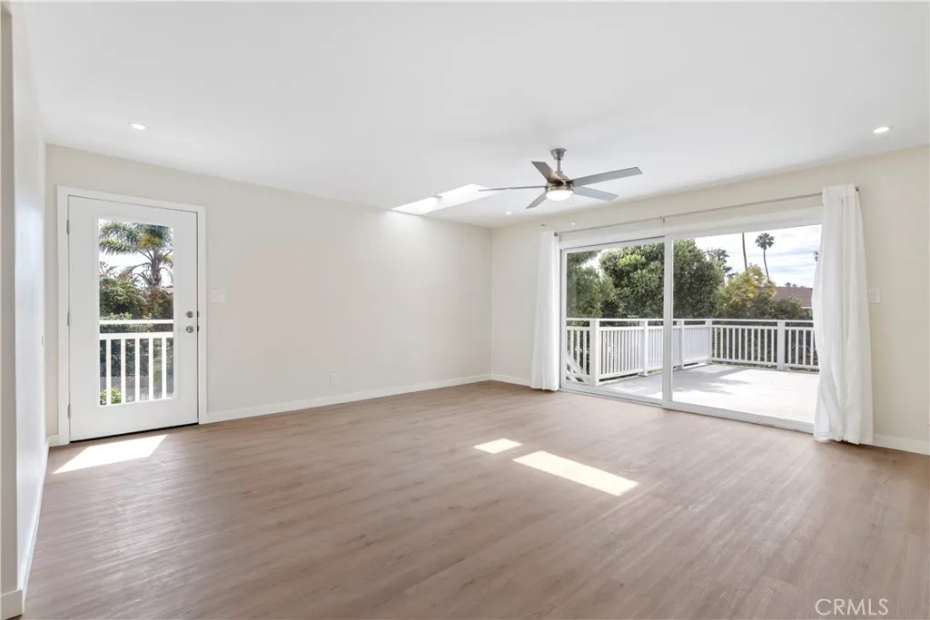 Welcome to the Treehouse! This beautifully updated, single-level second-story home is nestled in the highly desirable Ventura Keys–Pierpont Bay area, offering a serene coastal lifestyle in one of Ventura’s most picturesque neighborhoods. Flooded with natural light, the open-concept layout features a stunning kitchen complete with a waterfall-edge quartz peninsula, brand-new stainless steel appliances, quartz backsplash, large sink, under-cabinet lighting, stackable washer and dryer, and abundant cabinetry. The kitchen opens seamlessly to the dining area, where a sliding glass door leads to a charming balcony overlooking lush treetops. The spacious living room includes its own sliding glass door that opens to a generous deck—perfect for entertaining or simply enjoying the ocean breeze. The primary bedroom is a true retreat, offering two private decks. One sliding glass door opens to the expansive main deck, while a separate door leads to an additional private deck with a stairway down to the large backyard—an exceptional feature for this area. The ensuite bathroom has been tastefully updated with a large modern shower. This home includes three well-sized bedrooms, updated bathrooms, vinyl flooring throughout, skylights in the living room and second bedroom, ceiling fans in all bedrooms, double-pane windows, forced-air heating, and sheer sliding-door drapes. Parking is convenient with a one-car garage plus two driveway spaces (one located behind the garage). Abundant windows and natural light create an inviting, airy atmosphere throughout. The spacious backyard is a rare find in this neighborhood and offers endless possibilities. Nearby schools include Pierpont Elementary, Cabrillo Middle School, and Ventura High School.