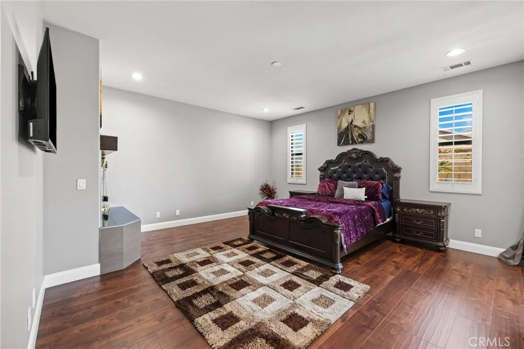 Welcome to this stunning 3 bedroom, 3 bathroom single-family home nestled in a quiet cul-de-sac, offering 2,265 sq ft of living space in the heart of Palm Desert. From the moment you arrive, the elegant double entry doors lead you into a spacious, light filled living area featuring vaulted high ceiling and a beautiful stone fireplace. The open concept kitchen and dining area are bright and inviting, with abundant cabinet space and room to gather. Large sliding glass doors seamlessly connect the indoor living space to a resort style backyard, complete with a covered patio, sparkling pool and spa, and lush landscaping perfect for entertaining or relaxing in your own private oasis. The master suite is a true retreat, showcasing a fireplace, soaking tub, double vanity, walk-in closet, and direct access to the pool and spa. The generously sized guest suite also includes a walk-in closet, while an additional bedroom is conveniently located near the third bathroom. Throughout the home, expansive windows, hardwood flooring and recessed lights. Each room filled with natural light, creating a warm and welcoming atmosphere. Recent upgrades include brand new AC units and the home also features solar panels for energy efficiency and cost savings. Additional highlights include a three car garage. Don’t miss the opportunity to make this exceptional property your own. schedule your visit today!