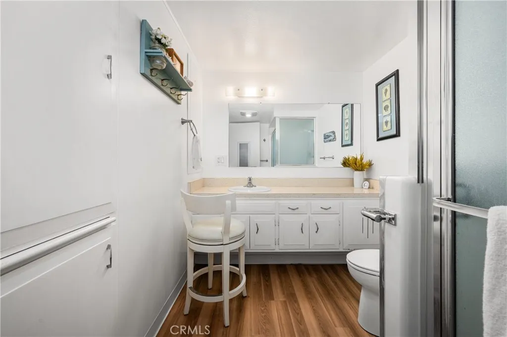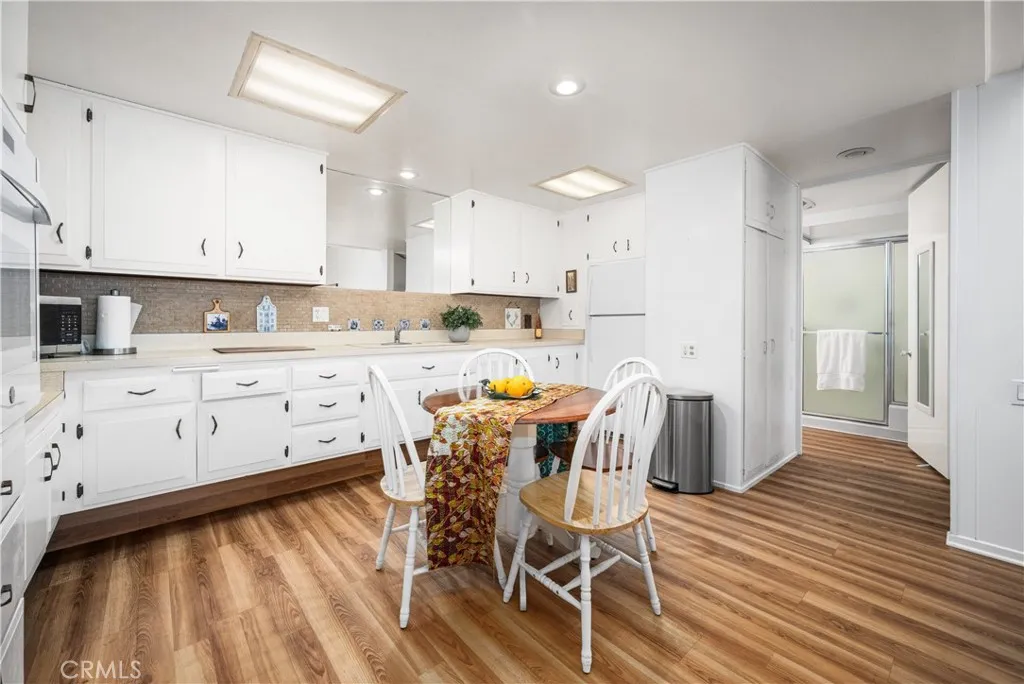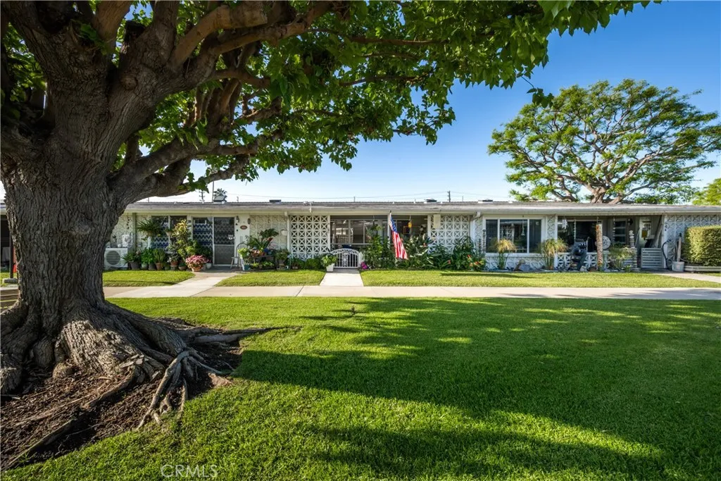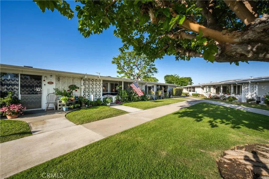 Charming one bedroom beach cottage nestled on a unique pie-shaped greenbelt in Mutual 2 offering a rare sense of space and privacy. This inviting home features convenient drive up parking and stylish laminate flooring throughout. Large cabinet on the patio for additional storage. The kitchen is accented with a tasteful backsplash, adding character and warmth. This cozy retreat blends comfort, charm, and an ideal coastal setting. Carport 32 Space 9