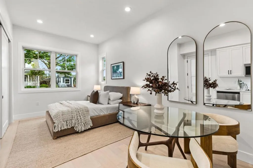 Exceptional new Thomas James Homes traditional-style residence on a quiet, tree-lined Willow Glen street with sidewalks and classic neighborhood charm. Thoughtfully designed with timeless curb appeal and elevated designer-selected finishes, this light-filled home offers a seamless open-concept layout ideal for modern living and entertaining. The chefs kitchen anchors the home with a large center island, walk-in pantry, premium Thermador appliances, and abundant cabinetry, flowing effortlessly into the spacious living and dining areas. Expansive glass doors open to a covered patio, creating inviting indoor-outdoor living year-round. An ADU with kitchenette and en suite bedroom provides incredible flexibility for guests, multigenerational living, rental income, or a private office. Upstairs, a generous loft offers additional living space, along with a well-appointed laundry room with sink and storage. The grand primary suite is a serene retreat, featuring a large walk-in closet and spa-inspired bath with dual vanities and refined finishes. Ideally located near neighborhood parks, top-rated schools, downtown Willow Glen, plus convenient commuter access to major highways and Silicon Valley tech hubs.
