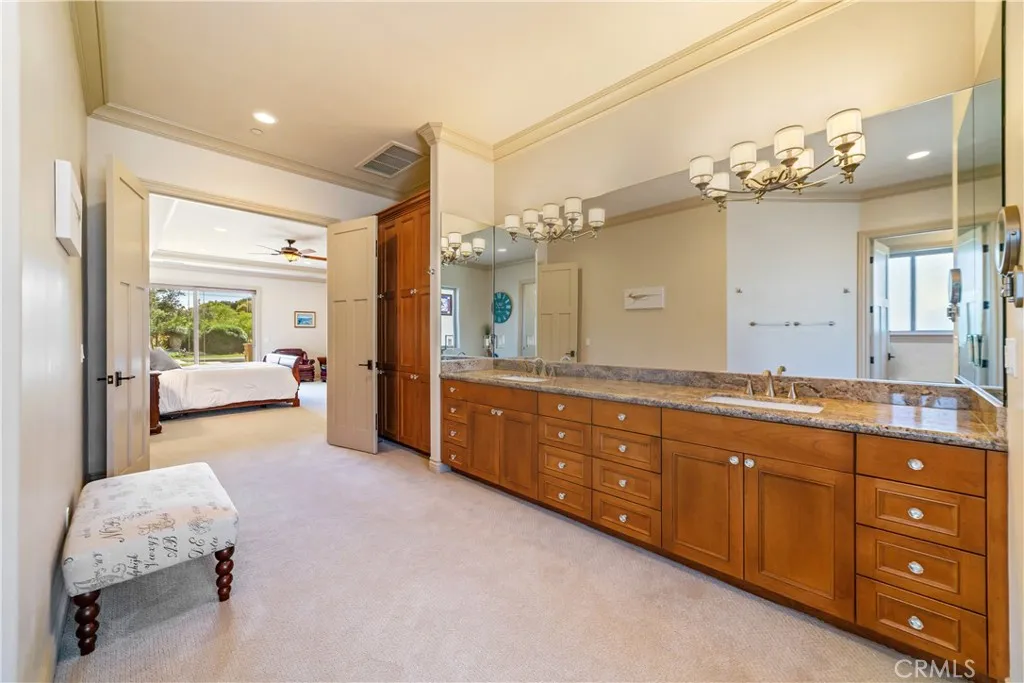 A one-of-a-kind opportunity for buyers: this exceptional private gated, single-level custom estate is located in the highly sought-after Rancho Fallbrook community, featuring access to a quaint gated lake and picnic area. This approx. 3,300 sq ft residence offers 3 bedrooms plus an office, 3.5 bathrooms, and a rare 40-foot-wide oversized 3-car garage. Set on 2 acres of fully fenced and gated grounds, the property showcases public utilities including city sewer- "NO SEPTIC", elevated views, mature landscaping with a diverse collection of trees and plantings, solar landscape lighting, multi-zone irrigation, and expansive outdoor living spaces including a custom saltwater pool and spa with Pentair systems, covered patio with fireplace, and a 5-hole putting green. Inside, craftsmanship is evident throughout with 12-foot ceilings, crown molding, solid wood doors, custom Alder cabinetry, and wood-look tile flooring. The chef’s kitchen features premium Thermador appliances including built-in refrigerator/freezer columns, 6-burner range with griddle, double ovens, drawer microwave, and walk-in pantry. RO water filtration, automated window coverings, smart home water controls, security system, infrared sauna, EV charger, and pre-piped solar conduit. Located just minutes from the 15 freeway with easy access to Temecula, Oceanside, HWY 76, the 5 freeway and San Diego, this rare offering combines privacy, luxury, and convenience in one of Fallbrook’s premier communities.