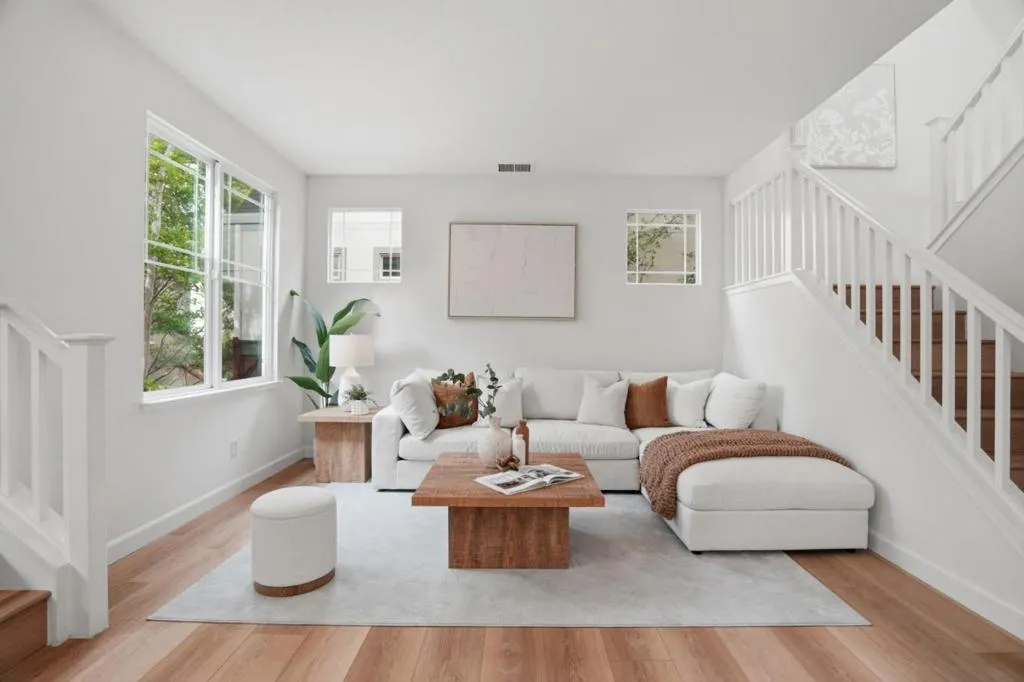 UPDATED DETACHED HOME IN SOUGHT-AFTER SETTING | This detached home in one of the most prized settings in Rivermark follows the popular Greens II Plan 2, providing an unbeatable blend of premium access and light-filled modern living. Upgraded with new paint, appliances, and luxury floors, the residence showcases high ceilings, a flexible office/sitting room, and ground-level guest suite. Gathering areas on the main level provide open-concept versatility, connecting to a revised kitchen with granite finishes, updated cabinetry, and a desk center. The primary suite is calm and alluring with dual vanities and a walk-in closet. Enjoy a gated side yard, central AC, Milgard® dual-pane windows, and an attached two-car garage. Situated in a private but highly walkable pocket of Rivermark, the home is a stroll away from the community pool, parks, Don Callejon School (K-8), and shopping, dining, and tea/coffee at Rivermark Village. Also near public transit, Google, Apple, NVIDIA, and much more!