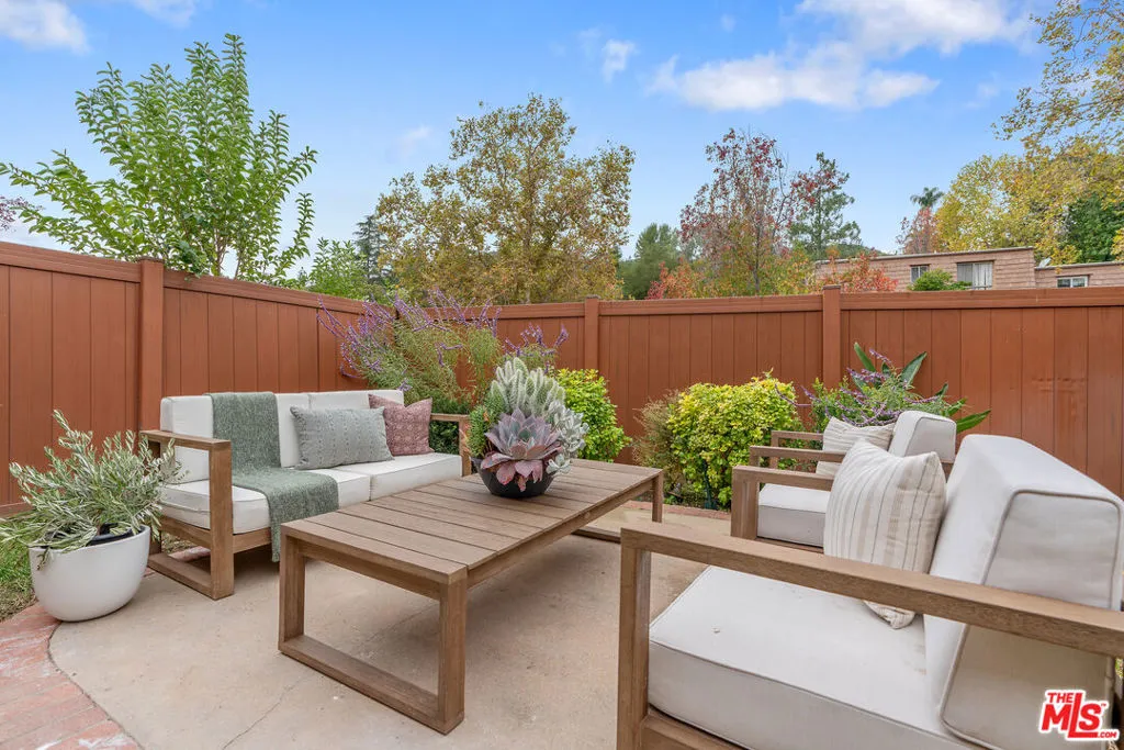 Beautifully Upgraded End Unit Townhome with One of the Largest Private Yards in the Community! Located in the heart of Agoura Hills, this recently upgraded end-unit townhome offers exceptional indoor-outdoor living with one of the largest private yards and patio in the community. The inviting floor plan features spacious living and dining rooms with walls of glass that fill the home with natural light and open to a large patio and lush backyard perfect for relaxing or entertaining. Upstairs, you'll find two comfortable bedrooms and a versatile bonus den or home office, ideal for today's lifestyle. The newly renovated bathroom showcases designer Bedrosians tiles and stylish finishes. Additional highlights include updated flooring, fresh paint, and direct access to the yard from the main living areas. The home is walking distance to the Community pool and spa! Enjoy the best of community living with the feel of a private home, just moments from parks, top-rated schools, and all that Agoura Hills has to offer. Located 1/2 mile from Liberty Canyon Trailhead for hiking & mountain biking. Easy access to 101 freeway, close to Pepperdine University, Malibu, restaurants & shopping. All this and in Las Virgenes School District.