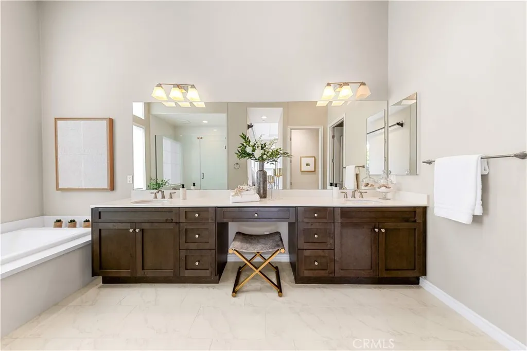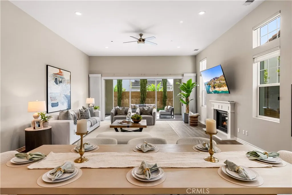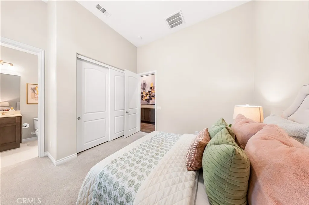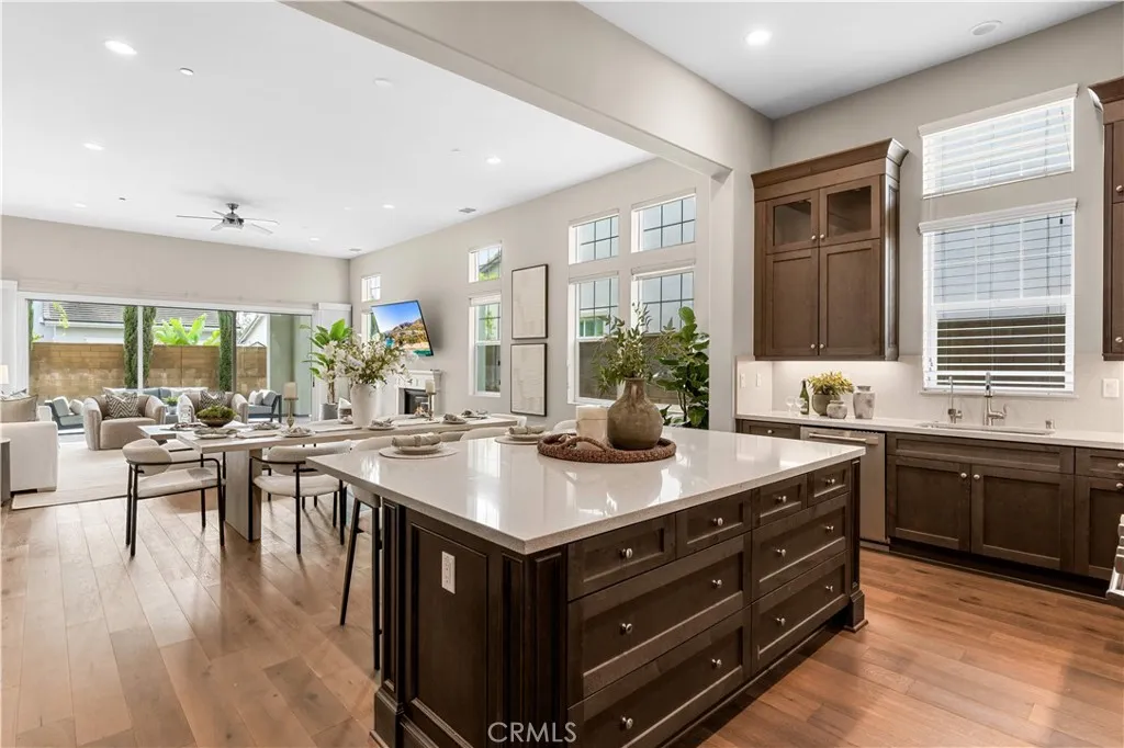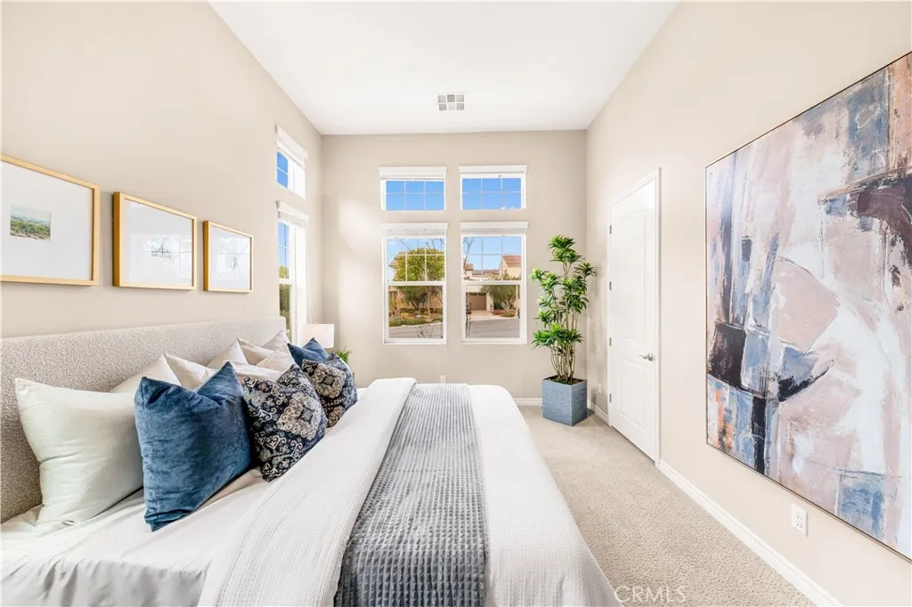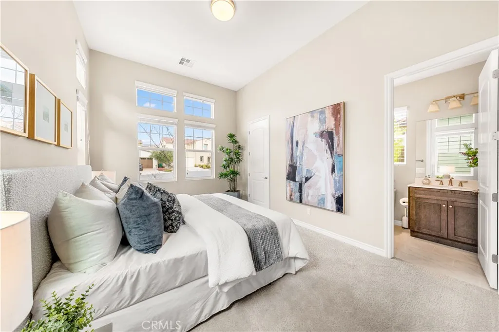 Rarely available single-story home nestled on a quiet cul-de-sac in the heart of Great Park. Situated on an oversized lot of nearly 7,500 sq.ft., this south-facing residence offers abundant natural light and exceptional privacy. Featuring soaring 12-foot ceilings and four ensuite bedrooms, this home showcases an open, seamless floor plan with high-end finishes throughout. Lightly lived in and meticulously maintained, it shows like a brand-new home. Beyond the welcoming front porch is a formal entry that leads to the expansive main living area. The kitchen, dining, and living spaces are thoughtfully connected and open to the California Room through large sliding glass doors, creating effortless indoor-outdoor living. The chef’s kitchen is appointed with premium appliances, rich wood cabinetry, quartz countertops, and abundant windows that enhance the bright and airy ambiance. The living room features a cozy fireplace and generous natural light. The private bedroom wing is located on the opposite side of the home, offering four spacious ensuite bedrooms, including two primary suites—one at the front and one at the rear. The grand primary suite includes its own California Room, a luxurious spa-inspired bathroom, and ample closet space. Upgraded flooring includes wood throughout most of the home, elegant tile in the bathrooms, and plush carpet in the bedrooms. Conveniently located near Bosque Trail, the upcoming Canopy shopping center, Beacon Park School, and community pools and parks. Residents enjoy access to all of Great Park’s exceptional amenities, including parks, pools, scenic trails, and community facilities, offering a vibrant and convenient lifestyle. Truly a rare opportunity to own a one-of-a-kind single-level home in one of Irvine’s most desirable neighborhoods.