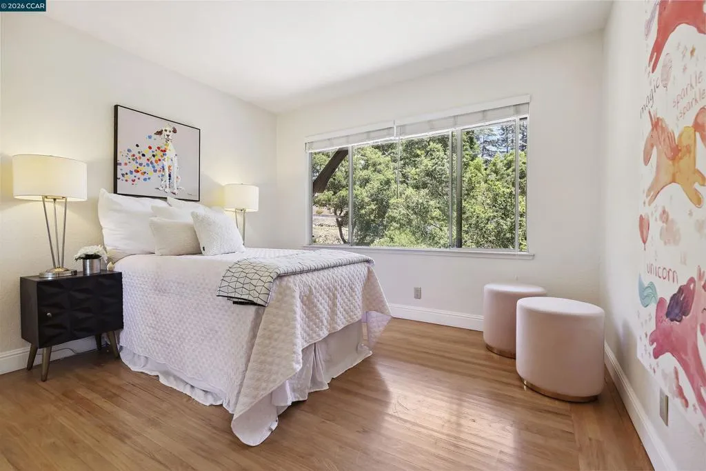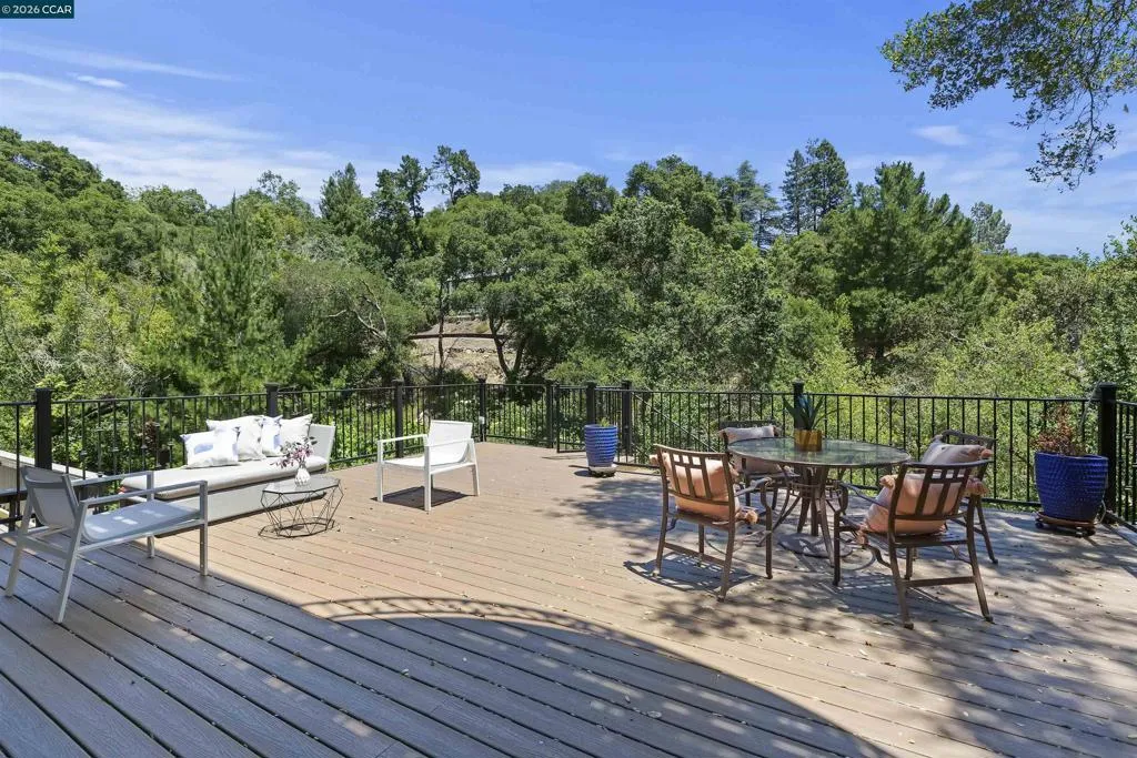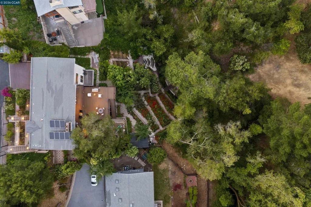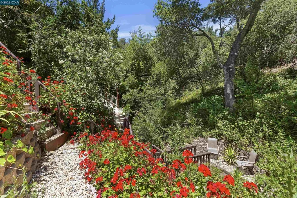 Tenant occupied property currently renting for $7000 per month including the in-law unit, with one family leasing both spaces. Tenant would like to remain, if possible, offering flexibility for investors or buyer seeking rental income. To minimize disruption, no sign and no open houses at this time. Showings only after receipt of an accepted offer contingent upon interior inspection. Welcome to peaceful, casual living in this beautiful 5-bedroom, 3.5-bath home offering 3,012 sq. ft. of living space on a lush and private 0.72-acre lot. tucked away in nature yet just minutes from Highway 24 and the Orinda BART station. Step inside to find panoramic views from the living room and dining area, two cozy wood-burning fireplaces, and a spacious family room ideal for entertaining. Modern upgrades include owned solar panels, an EV charging station, and a detached office—perfect for today’s remote work lifestyle or a meditation room. Outdoors, enjoy mature fruit trees, gorgeous, landscaped gardens, two tranquil waterfalls, and expansive decks. The property also features a flexible lower-level in-law unit (approx. 600 sq. ft., unpermitted) with a private entrance, bedroom, bathroom, laundry and living space—ideal for guests, extended family, or rental income.