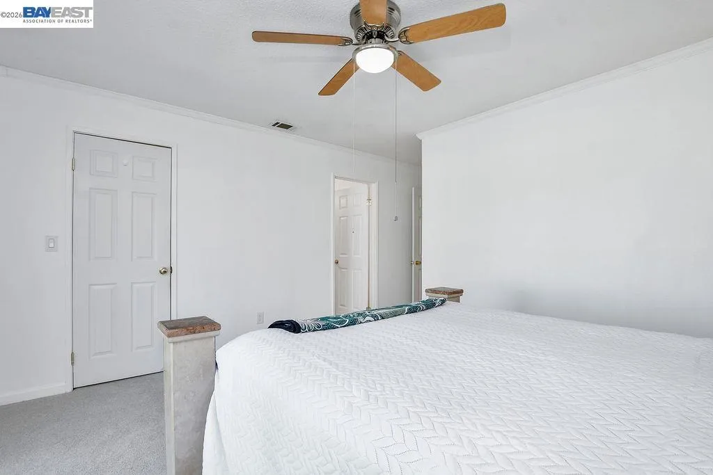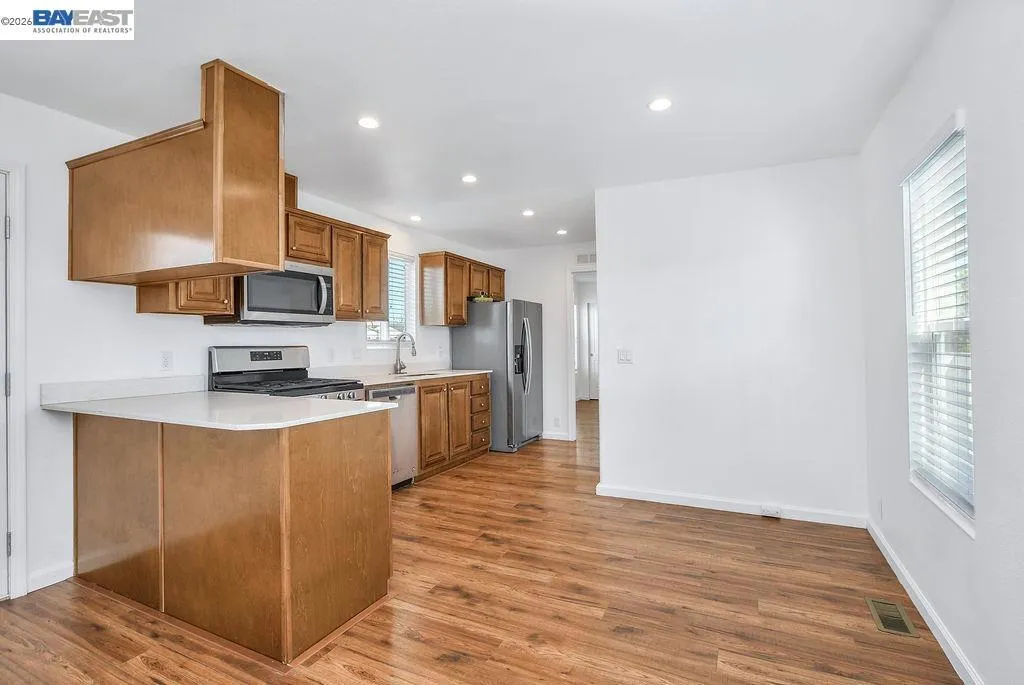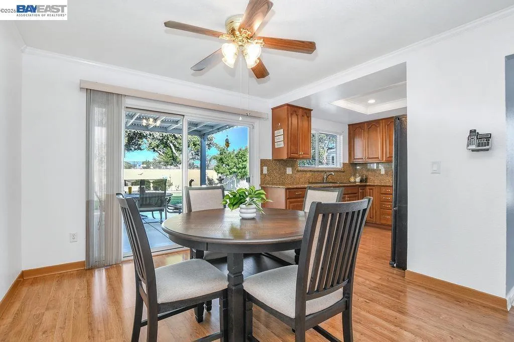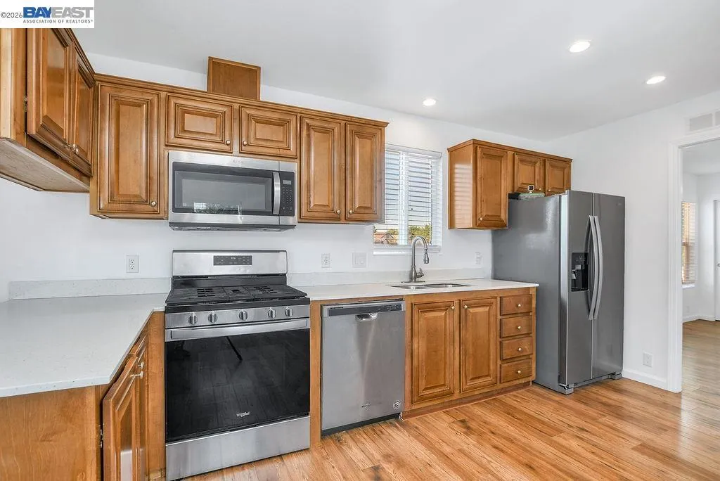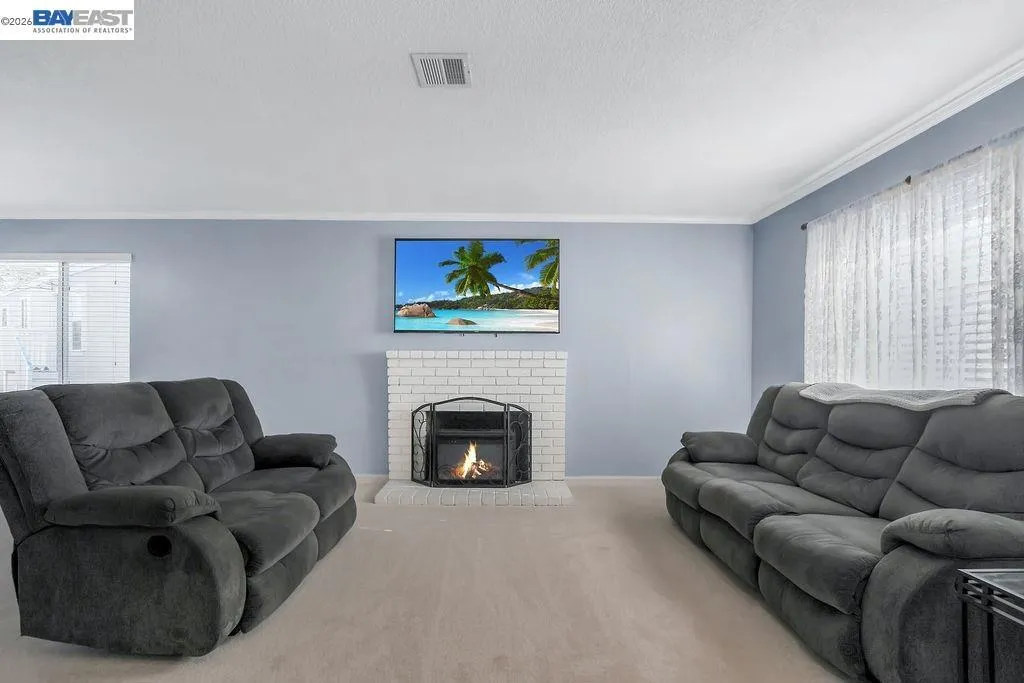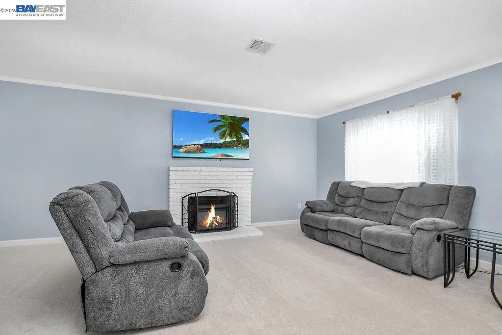 Located in the Springtown neighborhood of North Livermore, this versatile property offers two homes on a 0.26-acre lot, ideal for multi-generational living, rental income, or flexible lifestyle needs. Situated on a quiet cul-de-sac with no rear neighbors, the setting provides added privacy and functionality. The main residence features approximately 1,405 sq ft with 4 bedrooms and 2 bathrooms, offering a traditional floor plan with a formal living room highlighted by a classic brick fireplace and a separate formal dining room. The kitchen is equipped with granite countertops and recessed lighting, creating a bright and functional space for everyday living. Recent updates include fresh interior and exterior paint and new carpet, enhancing the home's overall appeal. The detached ADU is approximately 728 sq ft and a rare 2-bedroom, 1-bath layout. It features its own private entrance, fenced yard, storage area, laundry room, and an open kitchen and living room design, perfect for extended family or rental use. The expansive lot includes a covered patio, well-maintained lawn, storage shed, a variety of fruit trees including plum, lemon, and nectarine, and a large side yard with ample space for RV or boat parking.
