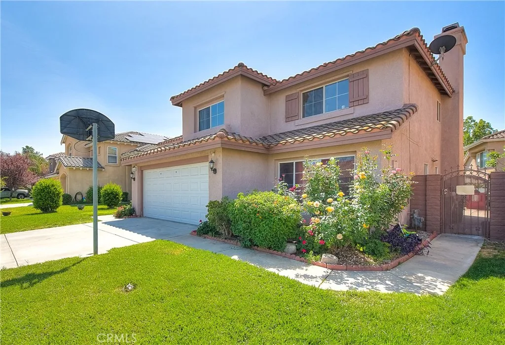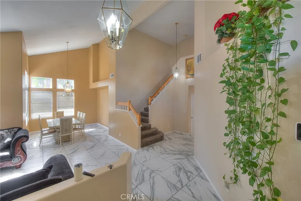 Welcome to this beautiful two-story home located in the highly desirable Moreno Valley Ranch community of Moreno Valley. Offering 4 bedrooms, 3 bathrooms, and 2,239 square feet of living space, this home combines comfort, style, and convenience. Step through the impressive dual-door entry into a bright and airy living space featuring vaulted ceilings that create an open, spacious feel. The home showcases modern tile and plush carpeting throughout, providing both elegance and comfort. The spacious primary suite is a true retreat, featuring stylish tray ceilings, a generous walk-in closet, and a well-appointed ensuite bathroom with dual sinks, a separate shower, and a soaking tub. This home is within walking distance to a top-rated elementary school and just minutes from nearby shopping centers, dining, and everyday conveniences. Enjoy all the exceptional amenities that Moreno Valley Ranch has to offer, including a resort-style pool, fully equipped fitness center, exclusive resident recreation center, private and public parks, as well as access to the lake and splash park—perfect for staying cool and making memories during warm summer days. Don’t miss this opportunity to own a stunning home in one of Moreno Valley’s most sought-after communities!