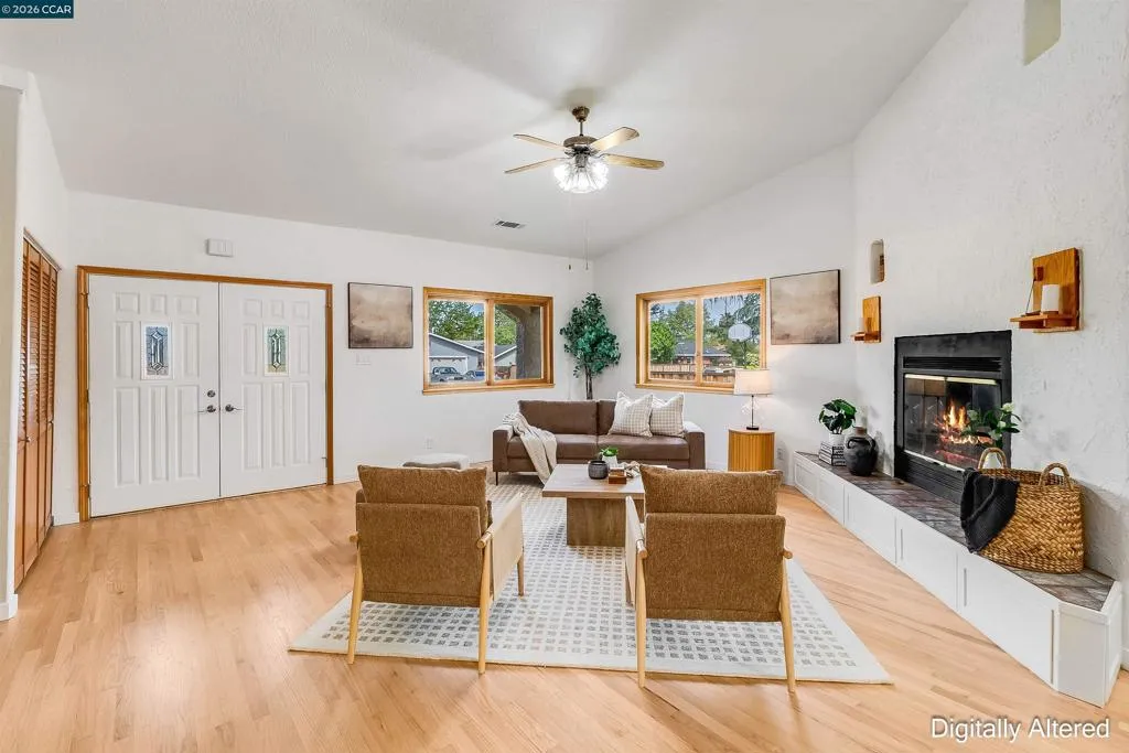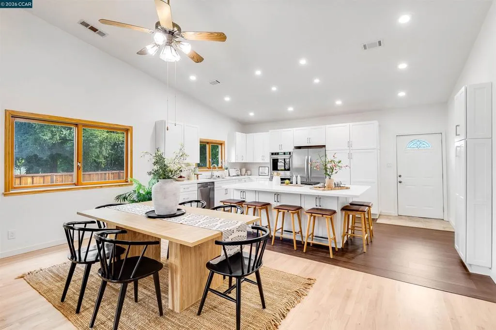 Tucked away on a private lane, this gorgeously updated Concord property offers the perfect blend of comfort, efficiency, and thoughtful design. Hardwood flooring throughout the main living areas, vaulted ceilings in the living room and primary suite, and beautifully remodeled bathrooms. Spacious primary bedroom is a true retreat with an en-suite spa-inspired bathroom complete with a jetted soaking tub and multi-head shower system. Stunning kitchen designed for both everyday living and entertaining, showcasing updated appliances, energy-efficient lighting, and a large center island. Additional highlights include carpeted bedrooms, unfinished attic, and versatile office/workshop space with direct garage entry. The three-car garage, private driveway, and additional front parking provide ample room for vehicles and storage. Built with energy-conscious features throughout, the home includes owned solar, newer roof, Anderson dual-pane double-insulated windows and sliding glass door, insulated exterior walls, ceiling, and floor, hot water recirculation for near-instant hot water, and well water for irrigation. Grounds offer multiple fruit-bearing trees, grapevines, grassy play areas, and generous gardening space. Detached workshop with sink adds even more functionality. Don't miss out!